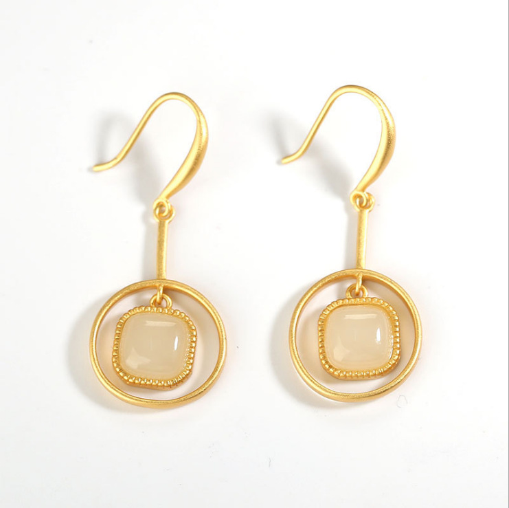民族风耳环女复古气质中国风天然和田玉蛋面玉耳坠女大气纯银耳饰