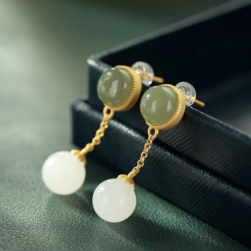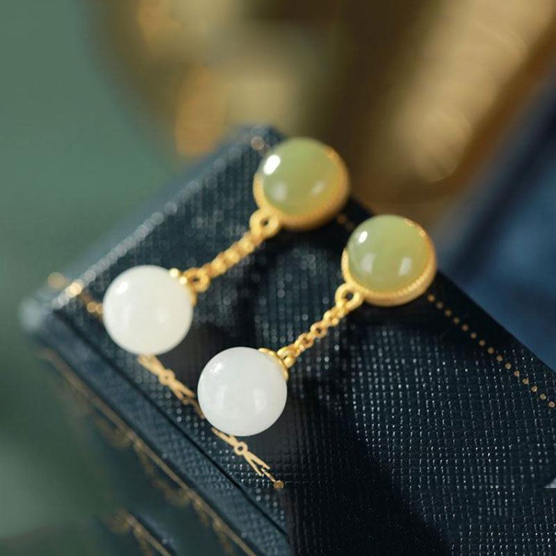 古法金青玉圆珠巴洛克风复古时尚潮流个性百搭长款古典耳钉