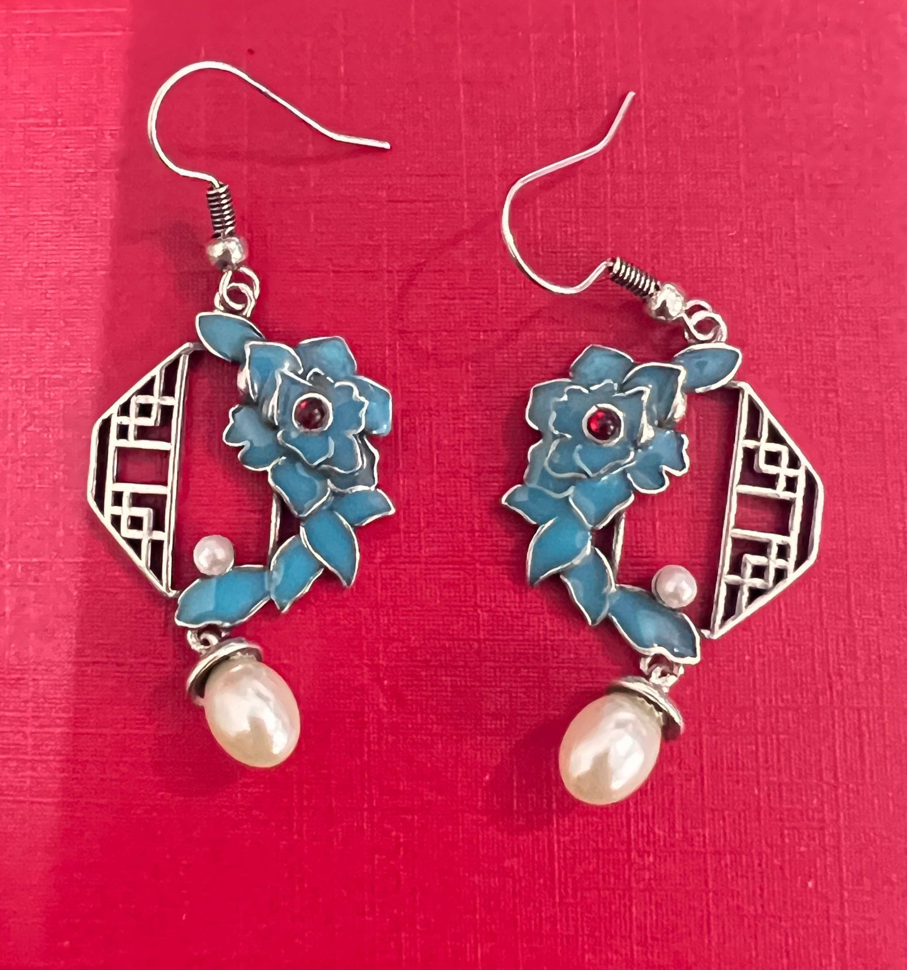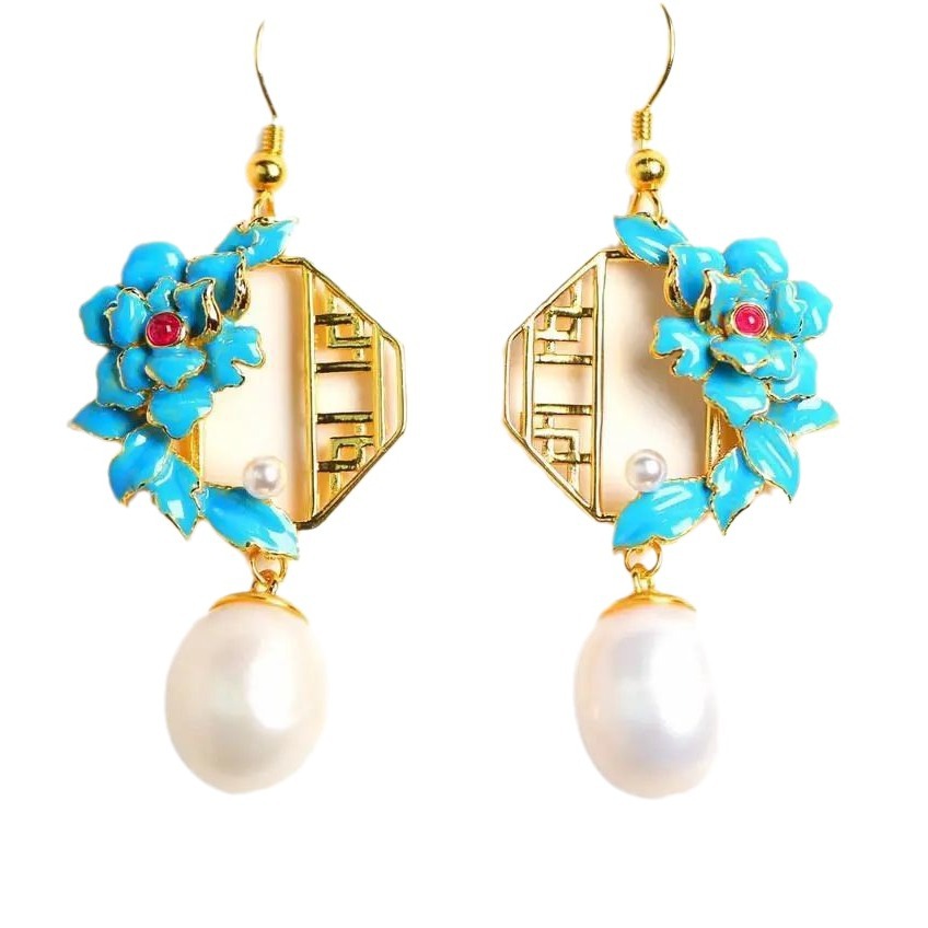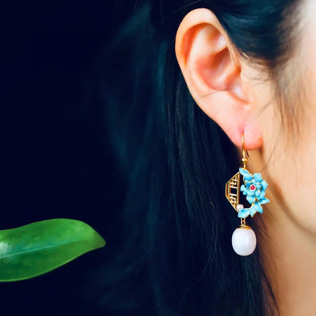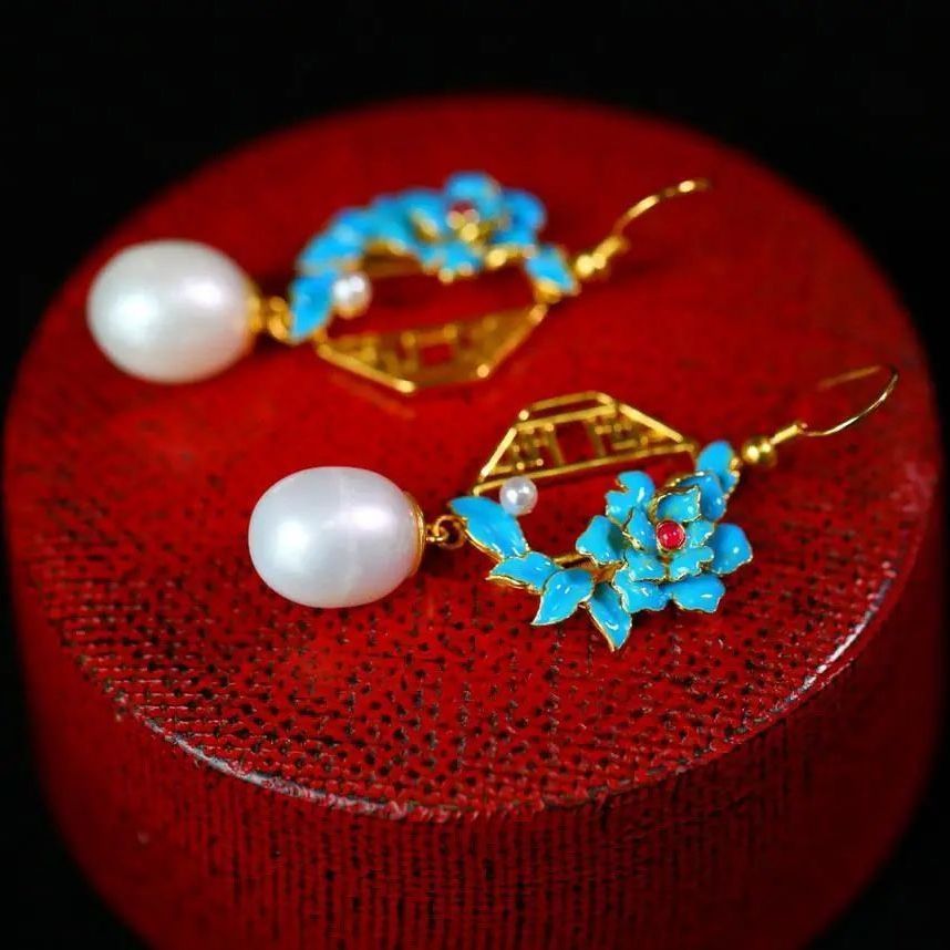 白玉耳坠925纯银镶嵌羊脂白玉耳环复古宫廷风汉服配饰古风饰品