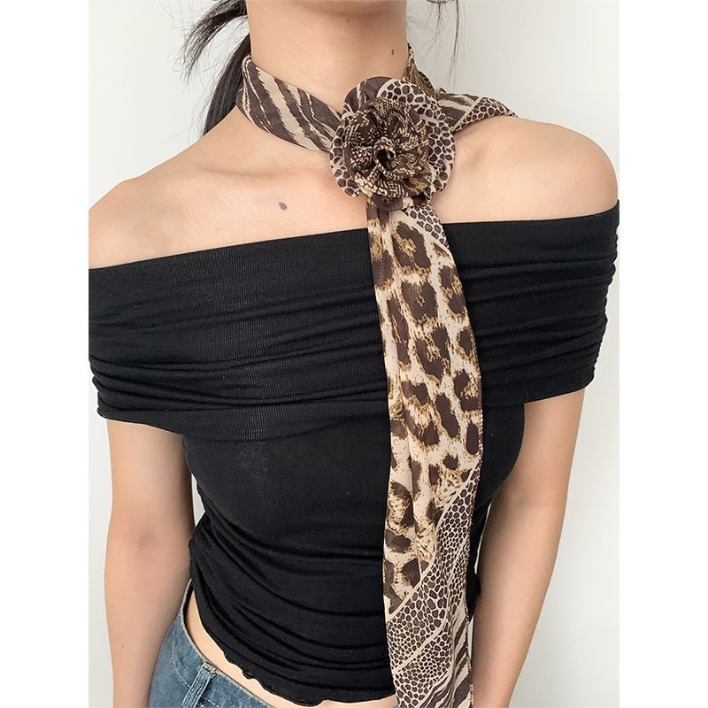 美式千禧辣妹风豹纹玫瑰花丝巾女甜酷时髦亚文化 y2k薄款围巾配饰
