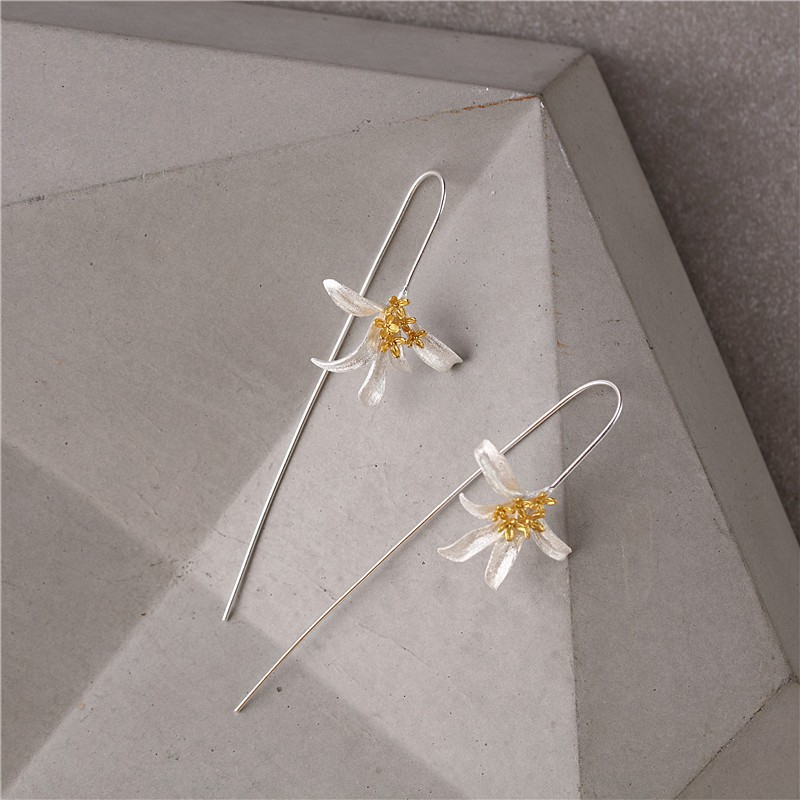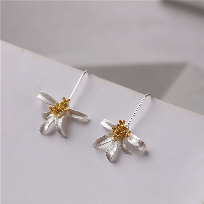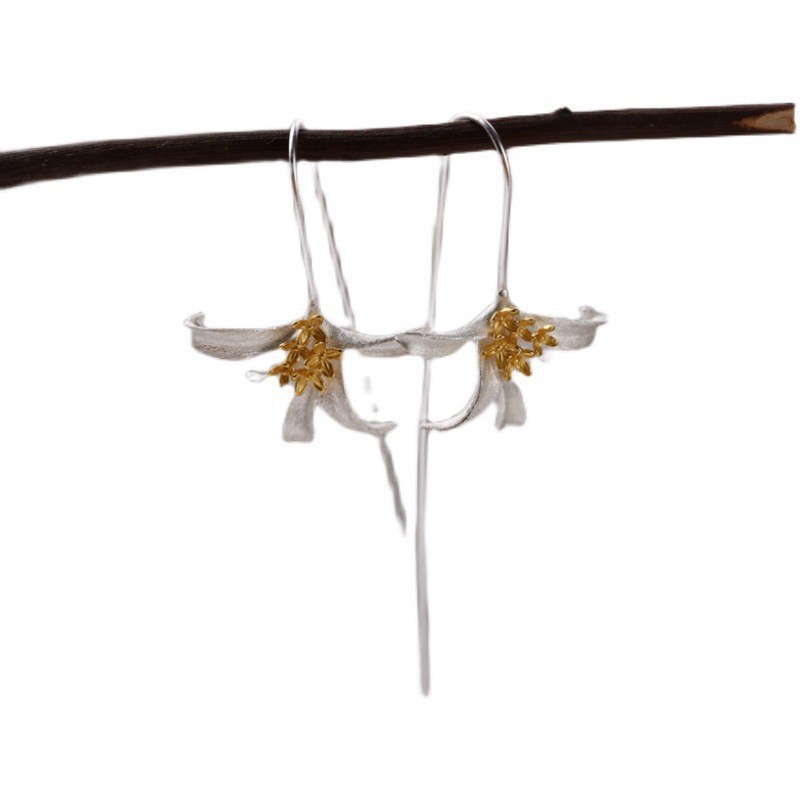 桂花香耳坠纯银S925女款耳环新中式小清新银耳饰批发田园风耳钉