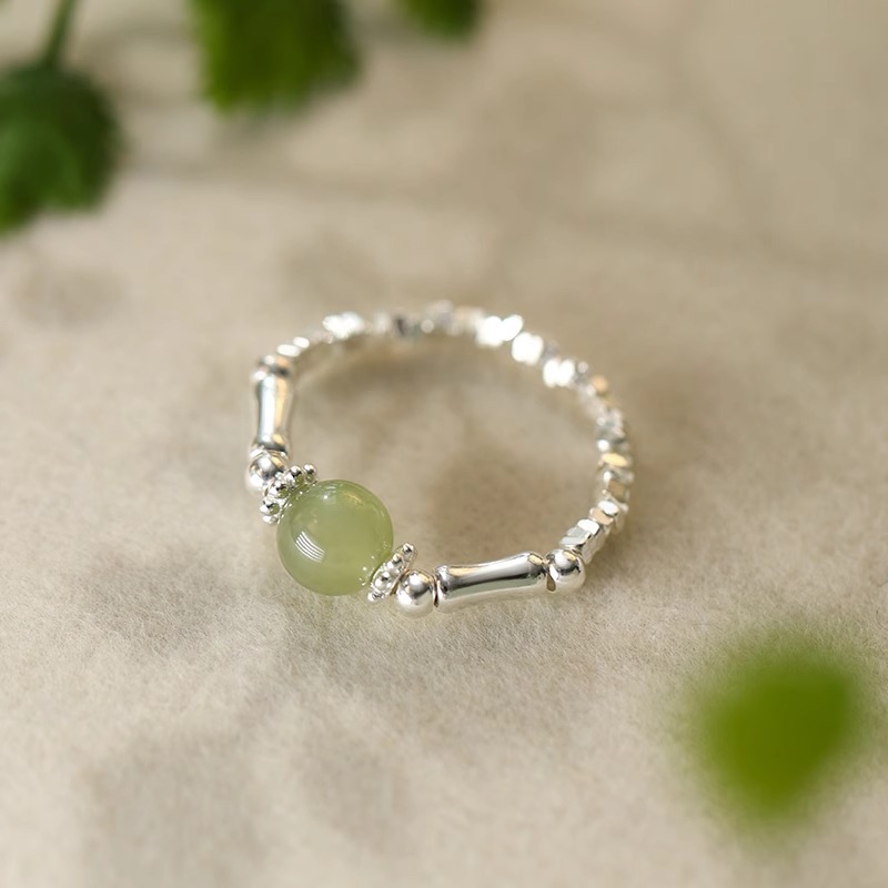 不规格碎银子玉石竹节新中式戒指国风复古食指环叠戴女弹力可调节
