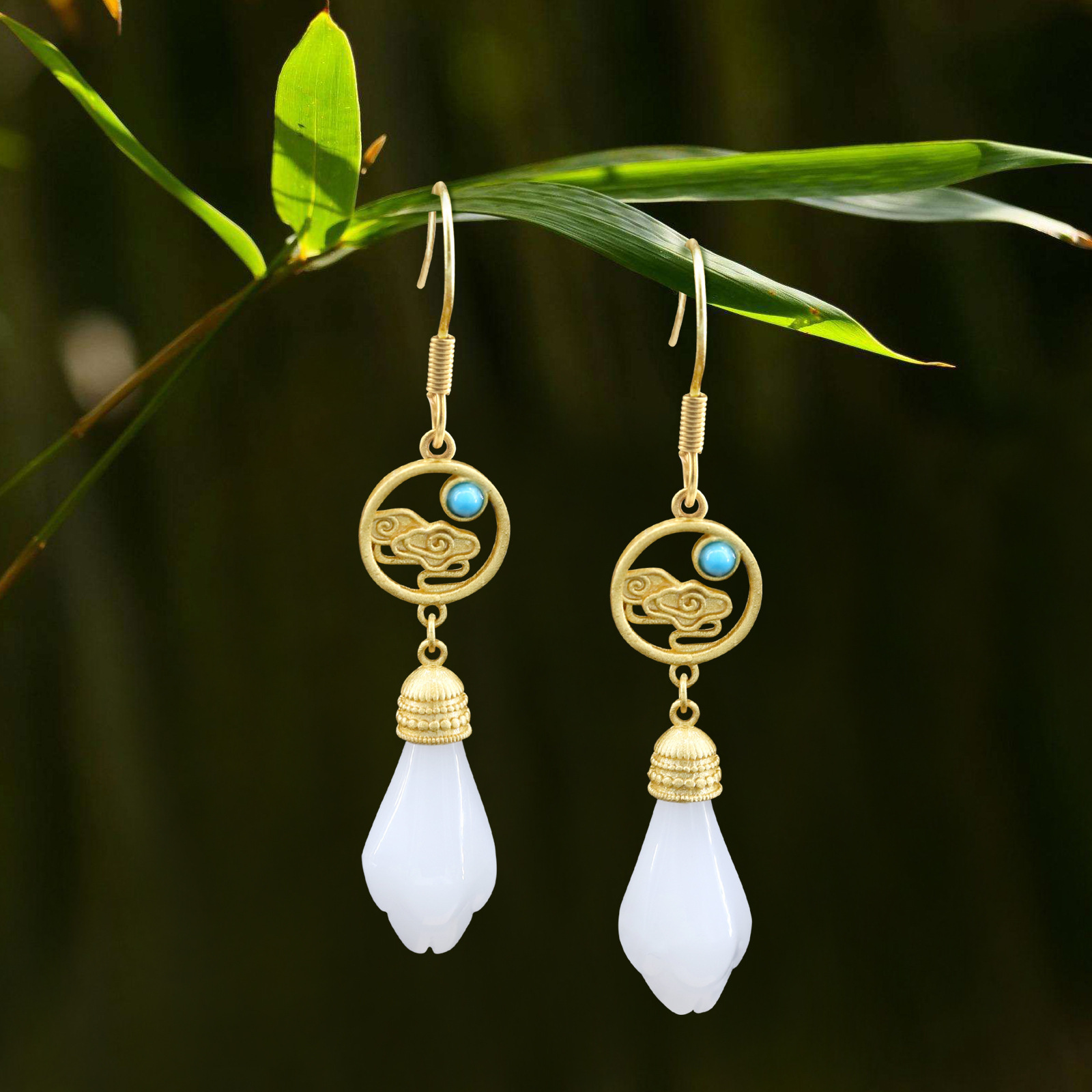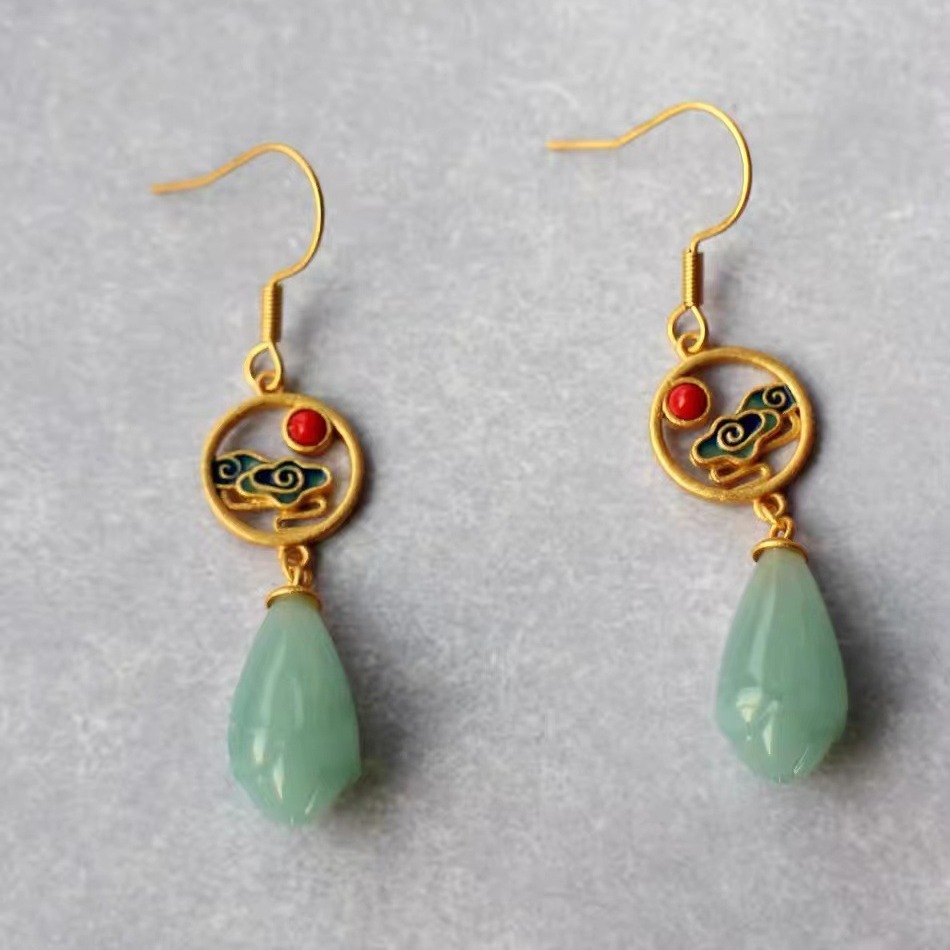 小众设计时尚民族风纯银珐琅工艺耳环配旗袍天然玉石耳坠古风装饰