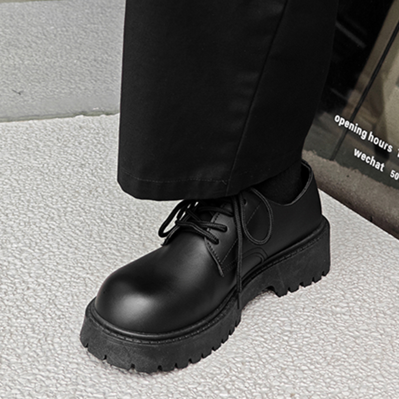大头皮鞋男款夏季休闲复古厚底增高德比鞋正装英伦风黑色宽脚潮鞋