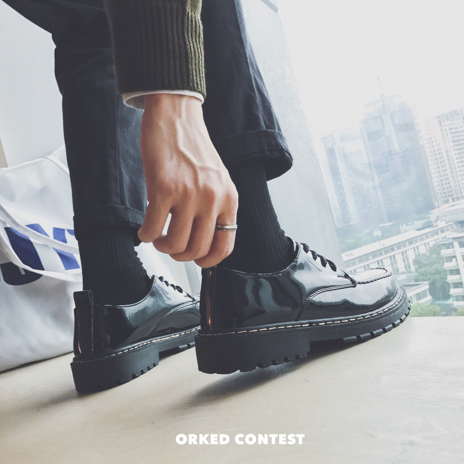 韩国男士小皮鞋黑色韩版亮皮圆头学生系带青年休闲男鞋子