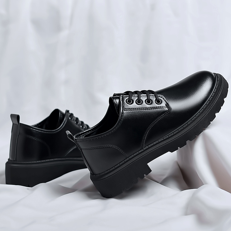 男鞋2025新款防水英伦风休闲皮鞋男商务正装黑色大头男士工作潮鞋