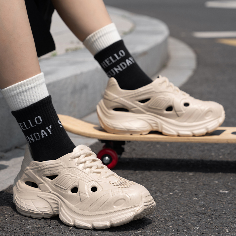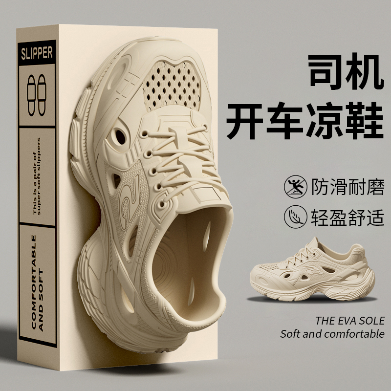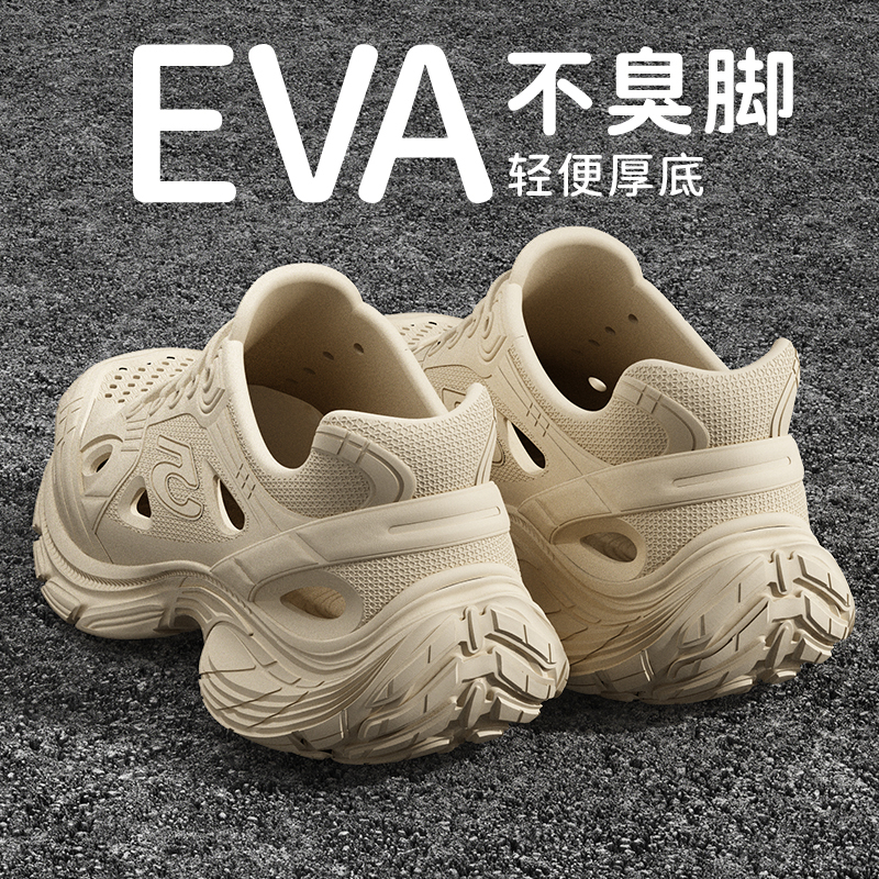 2025新款厚底洞洞鞋男款夏季户外运动防滑防臭柔软踩屎感凉鞋男士