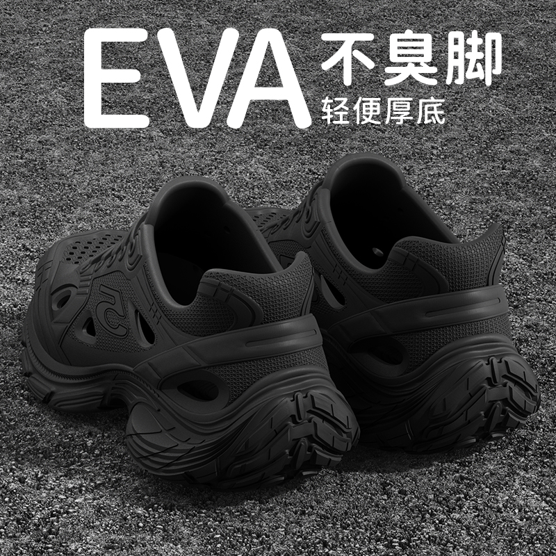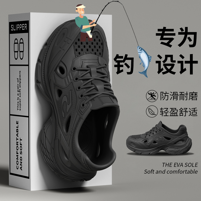 2025新款厚底洞洞鞋男款夏季户外钓鱼防滑防臭开车踩屎感凉鞋男士