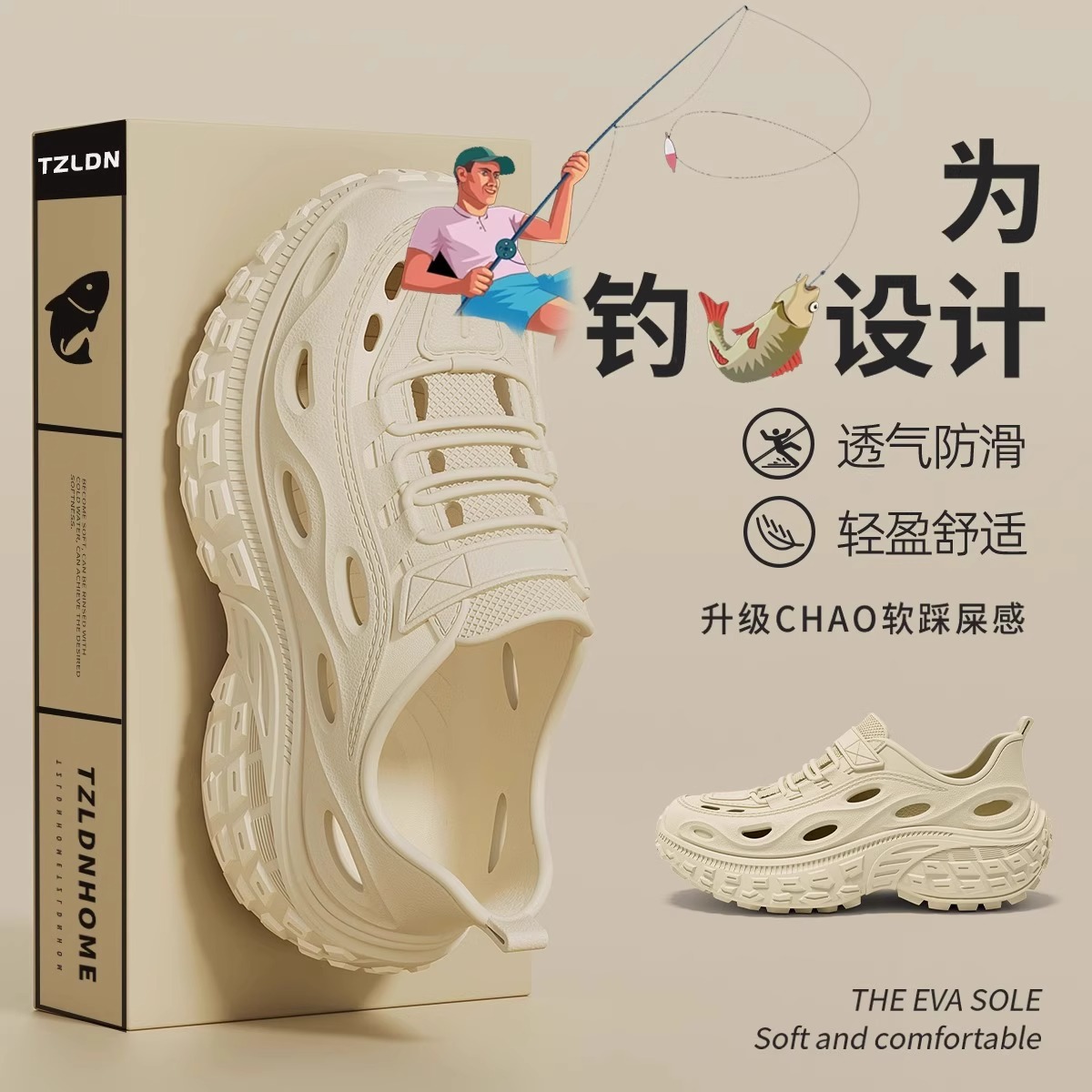 踩屎感洞洞鞋男士拖鞋厚底轻盈外穿防滑耐磨防臭开车钓鱼夏季凉鞋