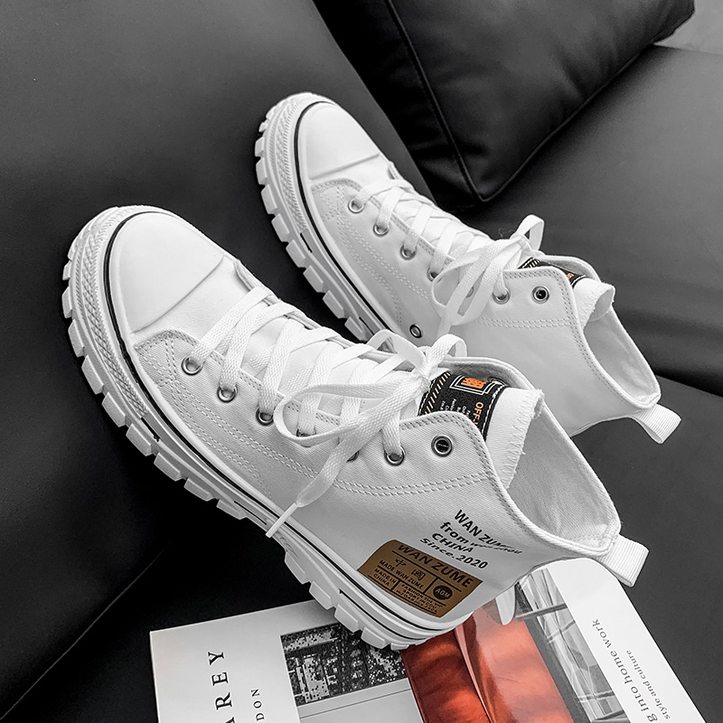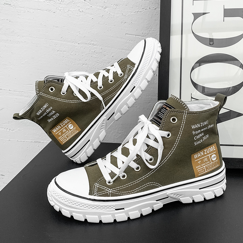 高帮帆布男鞋秋季潮流增高板鞋学生布鞋运动休闲男士百搭黑色潮鞋
