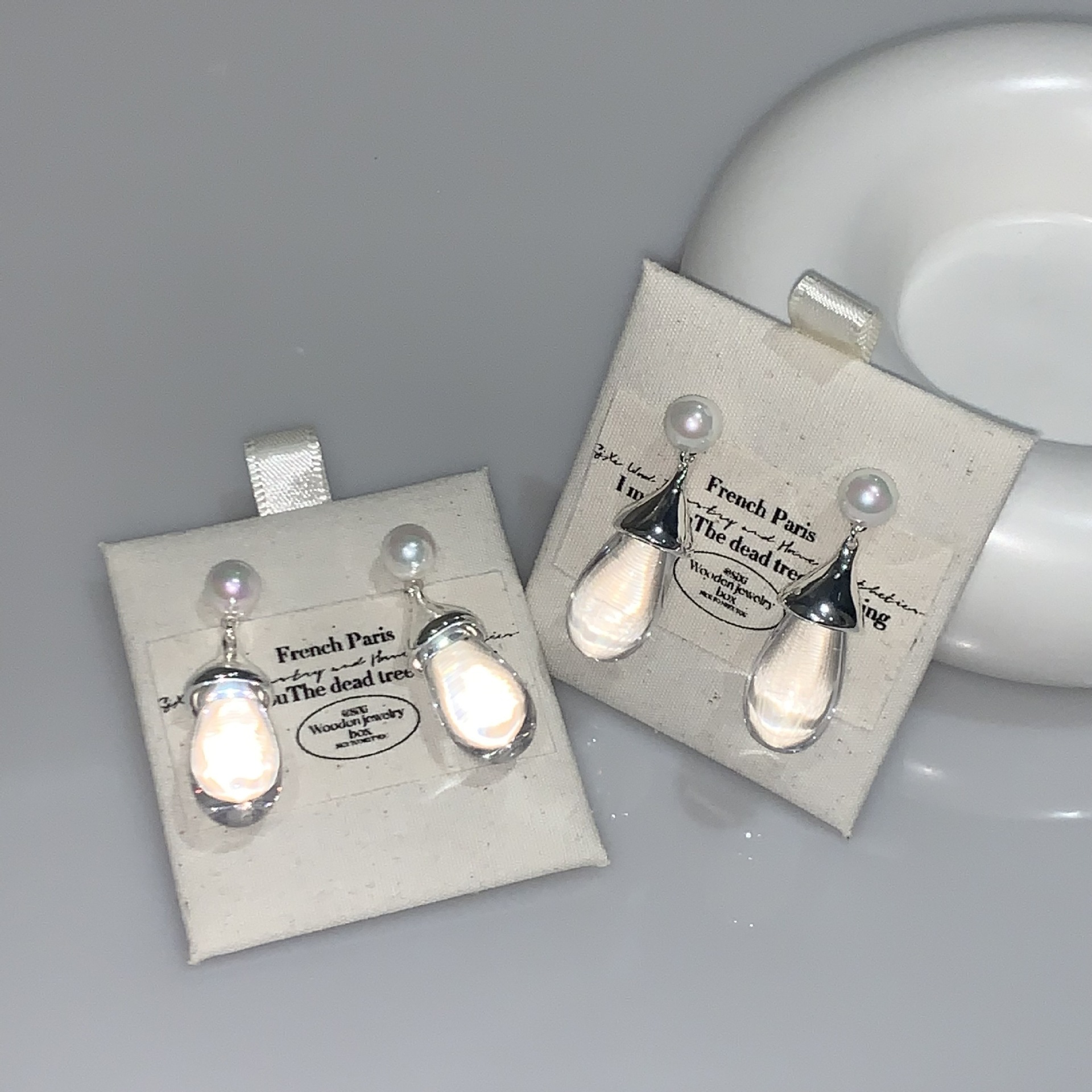 S925银针法式独特珍珠透明水滴耳环高级感时尚小众设计感轻奢圆脸