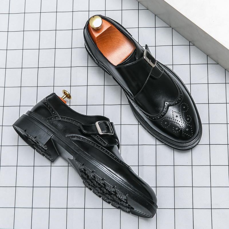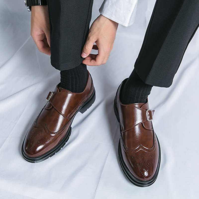 2025新款雕花真皮商务正装皮鞋男士布洛克尖头孟克鞋