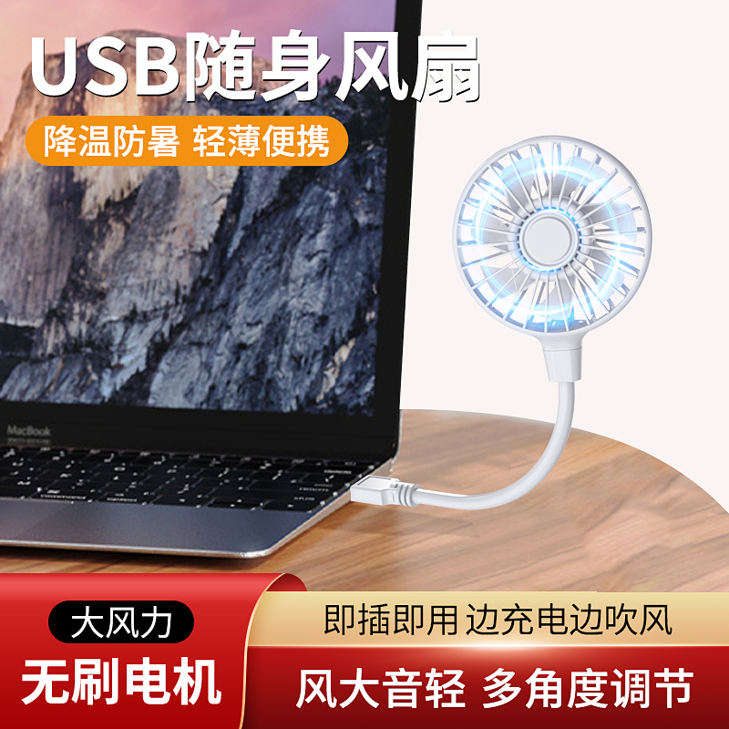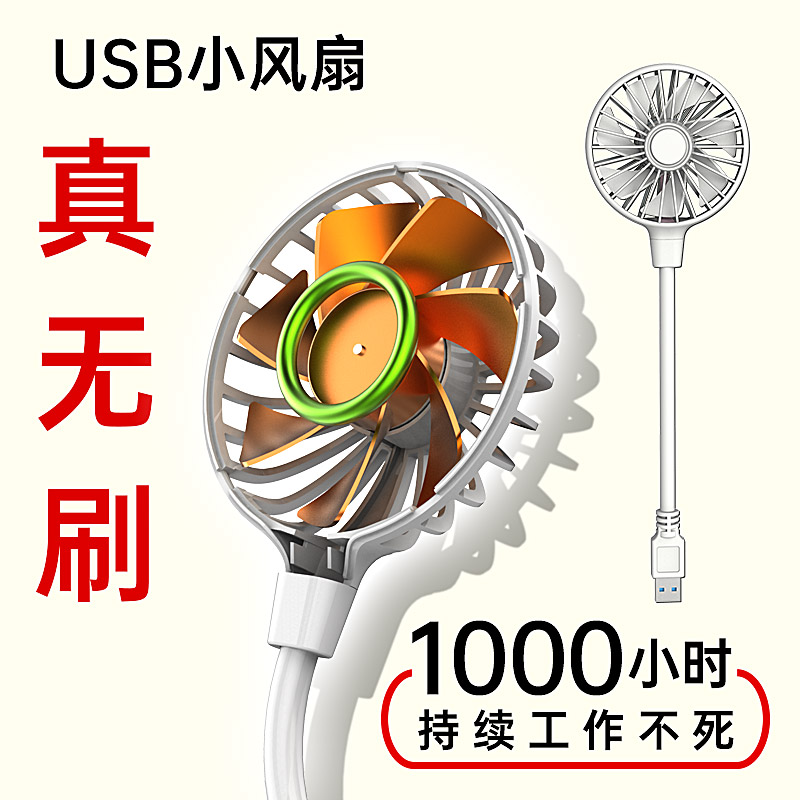 USB小风扇直插供电大风力无刷宿舍学生笔记本电脑车载迷你散热扇插电桌面露营随身充电厨房降温办公便携