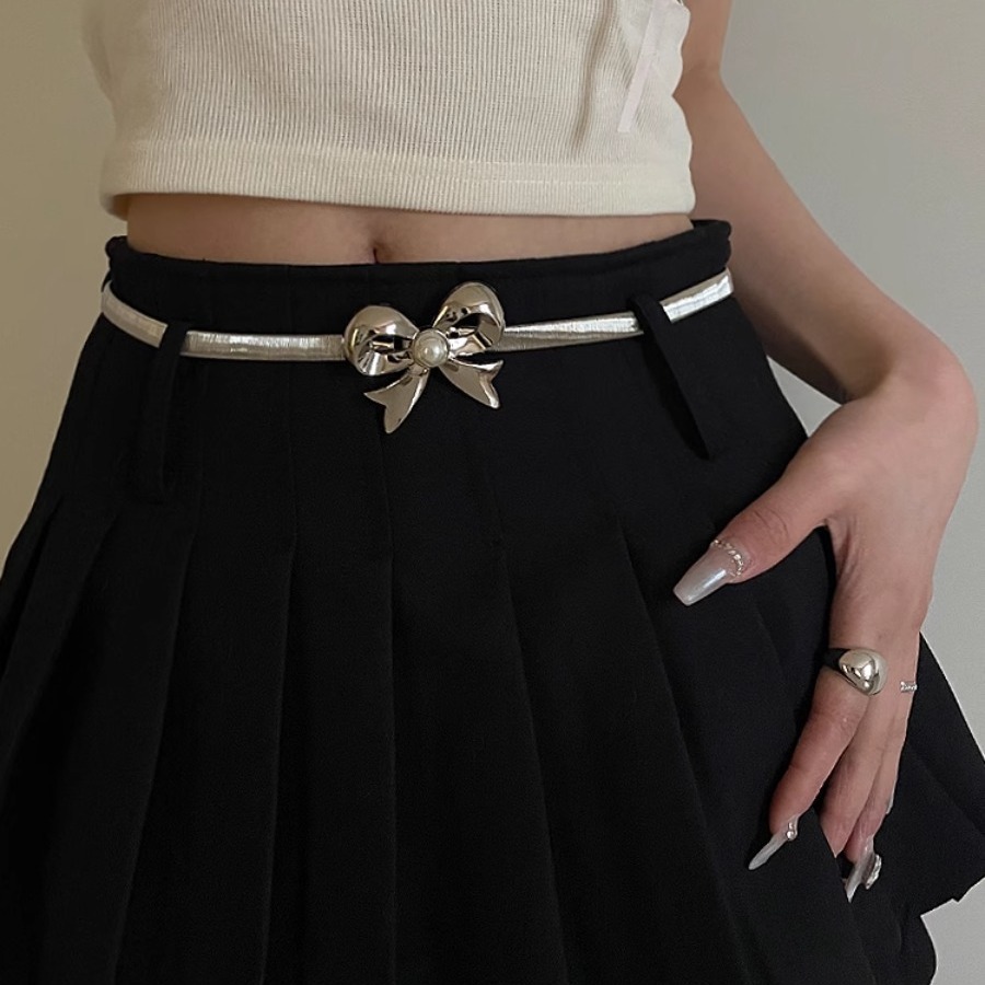 金属松紧腰带女 ins风小众设计感蝴蝶结清冷高级感百搭显瘦腰链女