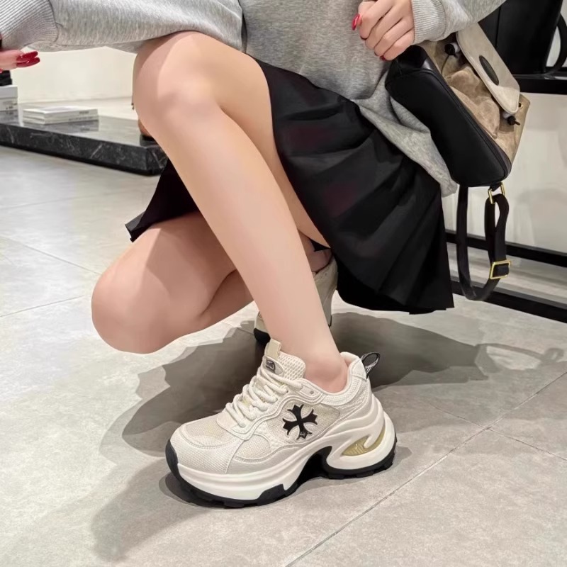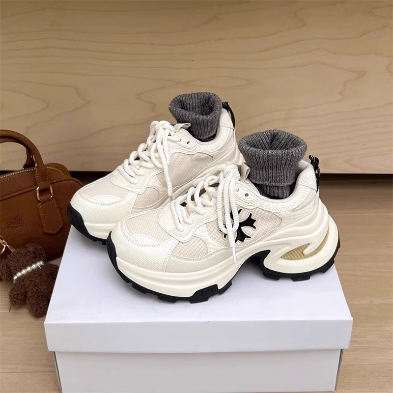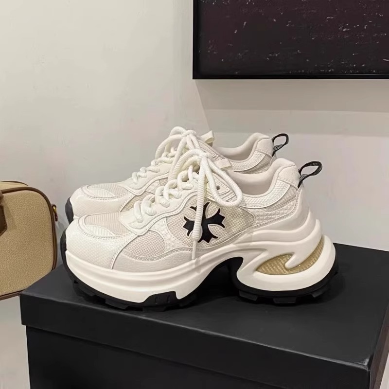 增高7.5cm~真皮十字花厚底老爹鞋女春季新款透气跑步鞋休闲运动鞋