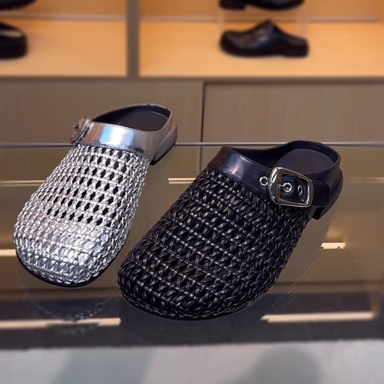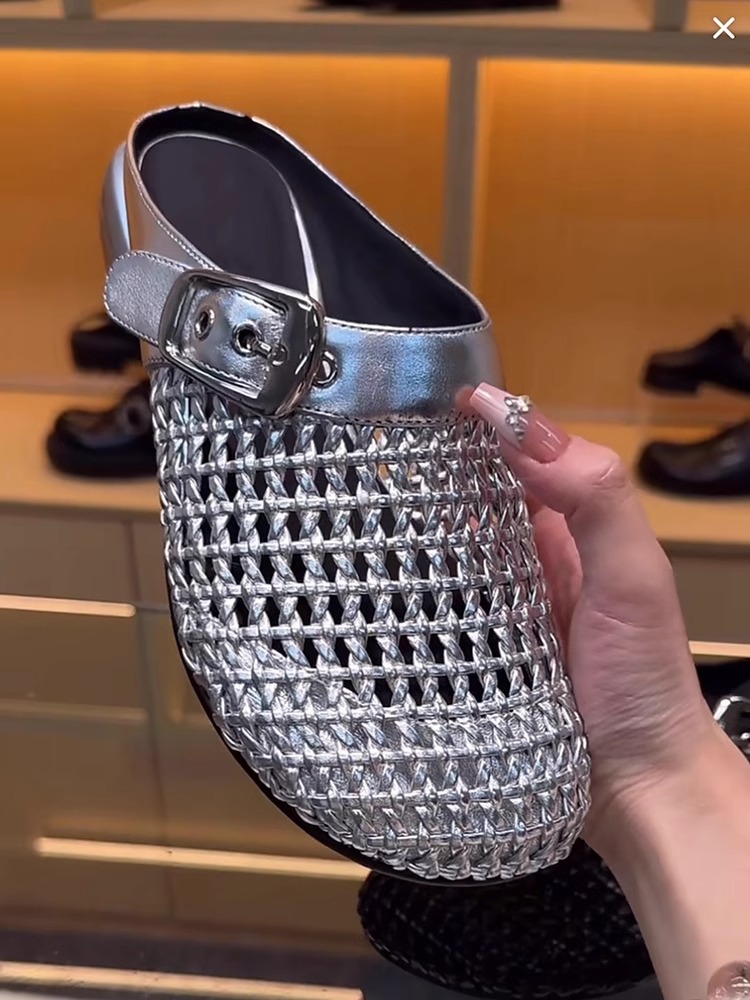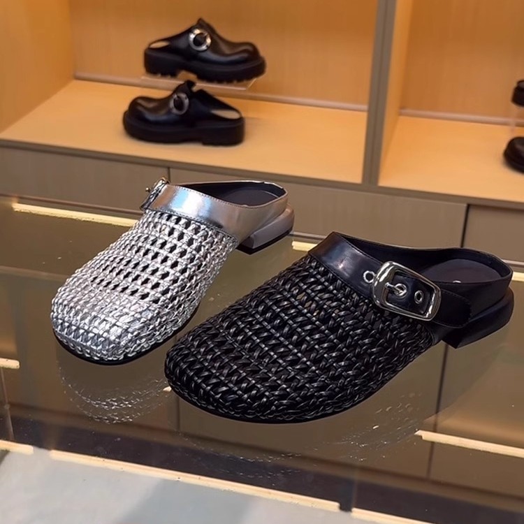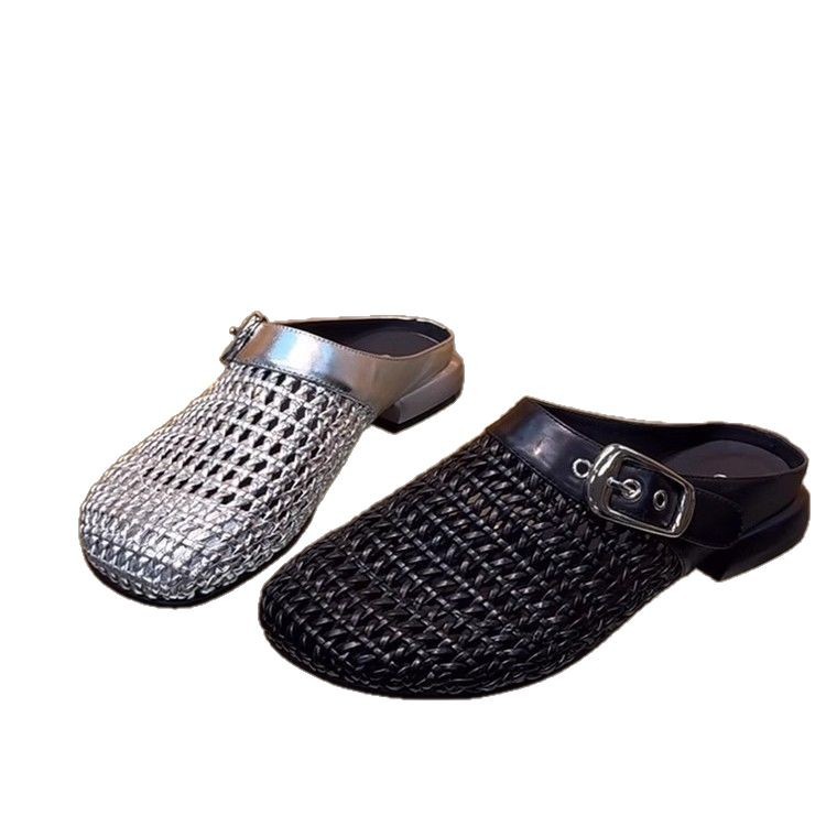 编织镂空包头半拖鞋女外穿2025春夏新款气质百搭穆勒鞋粗跟凉拖鞋