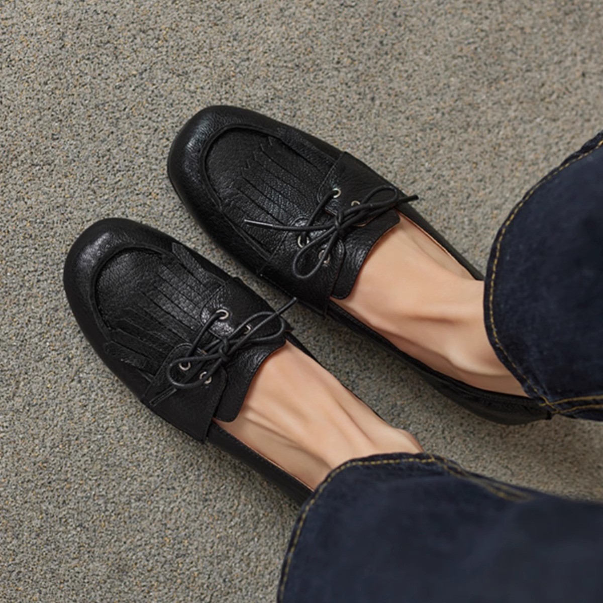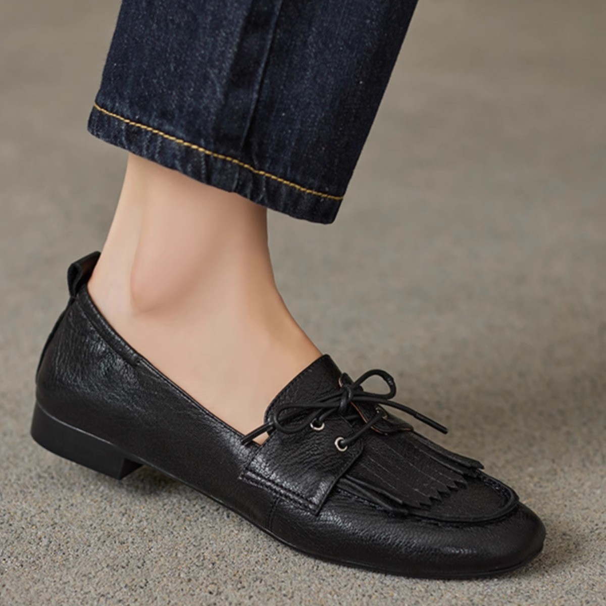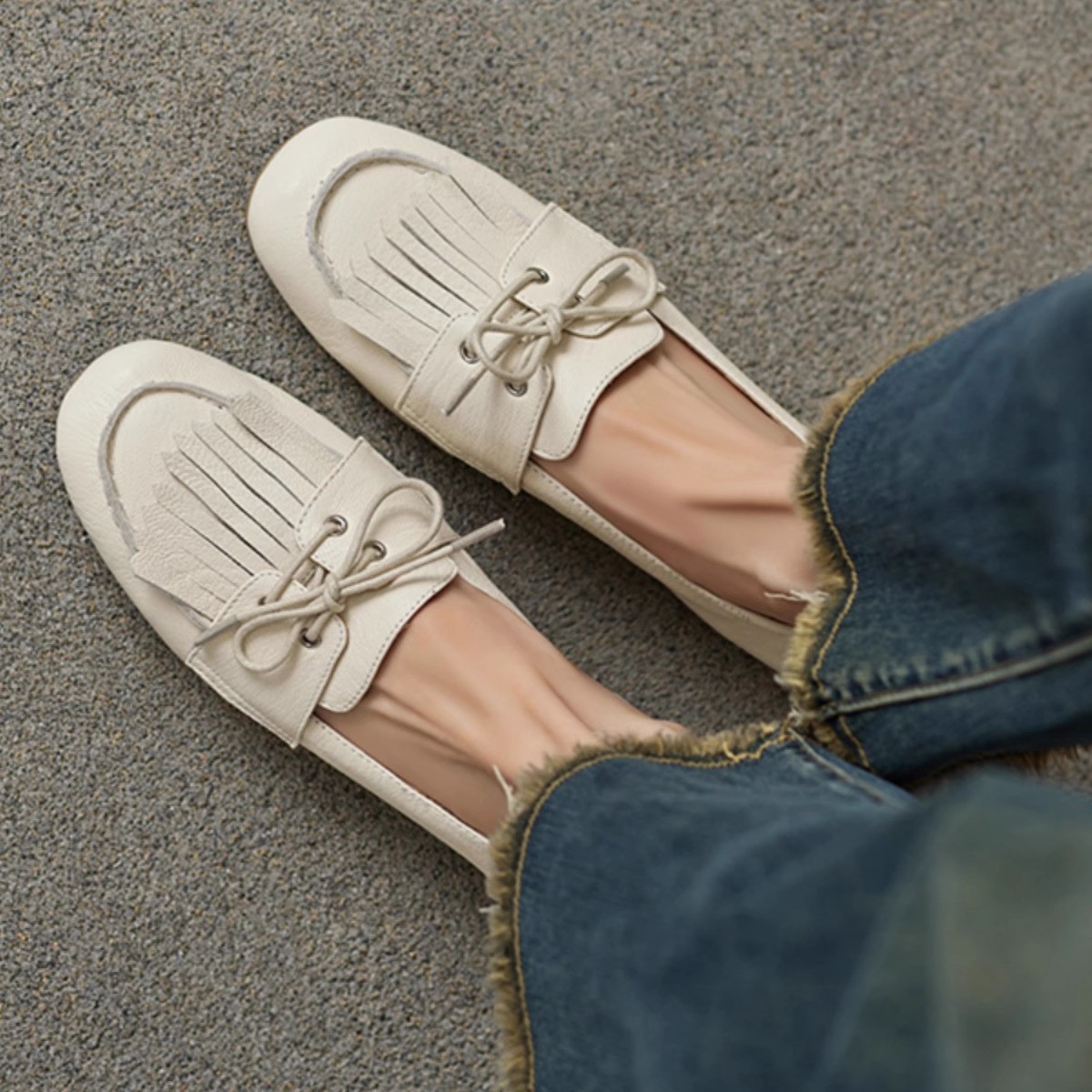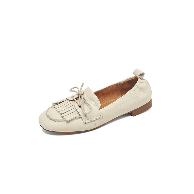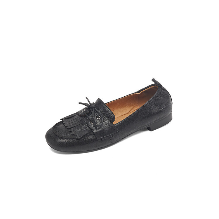 巨好穿舒适平底豆豆鞋女新款时尚流苏中口单鞋一脚蹬小皮鞋