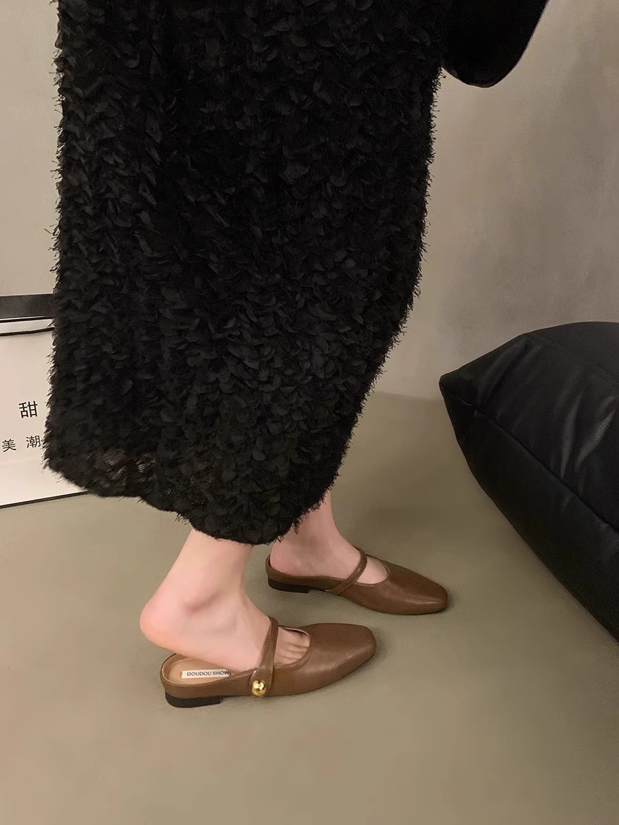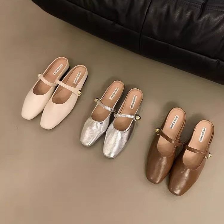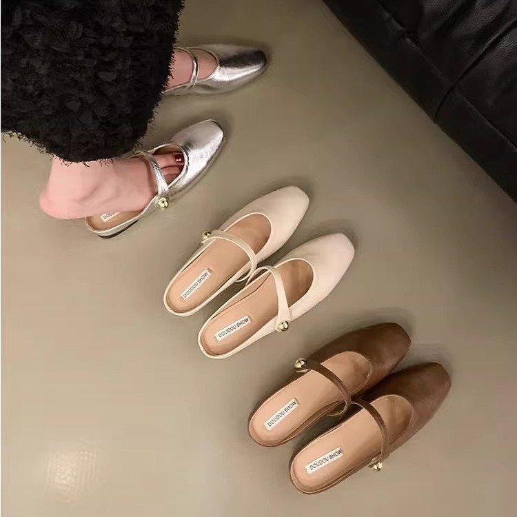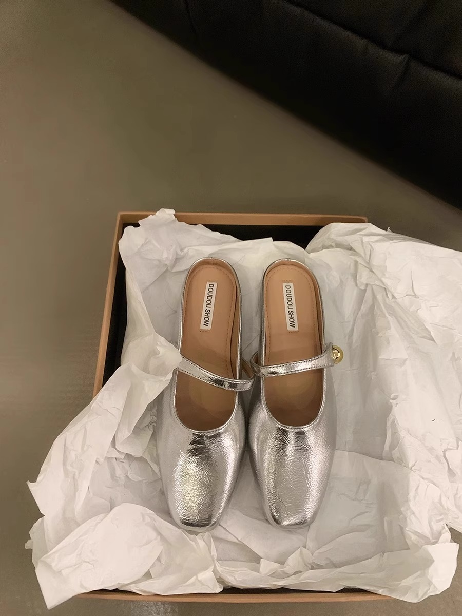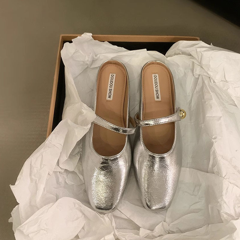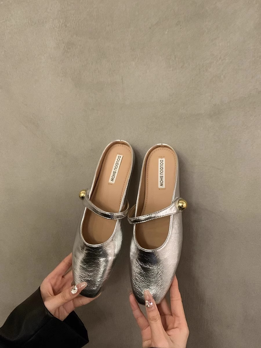 银色包头半拖鞋女夏季外穿2025新款一脚蹬懒人孕妇法式穆勒鞋半拖