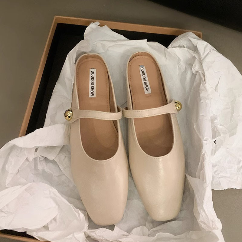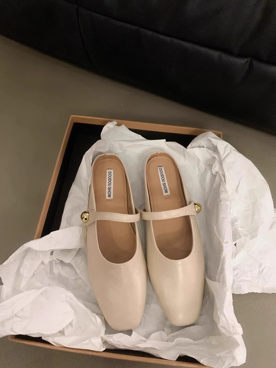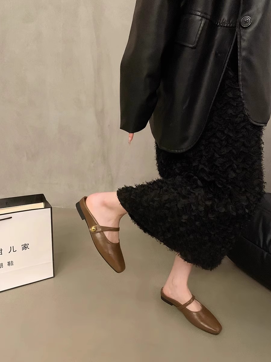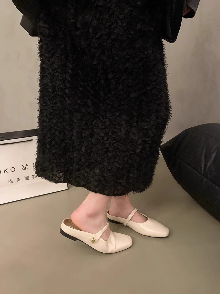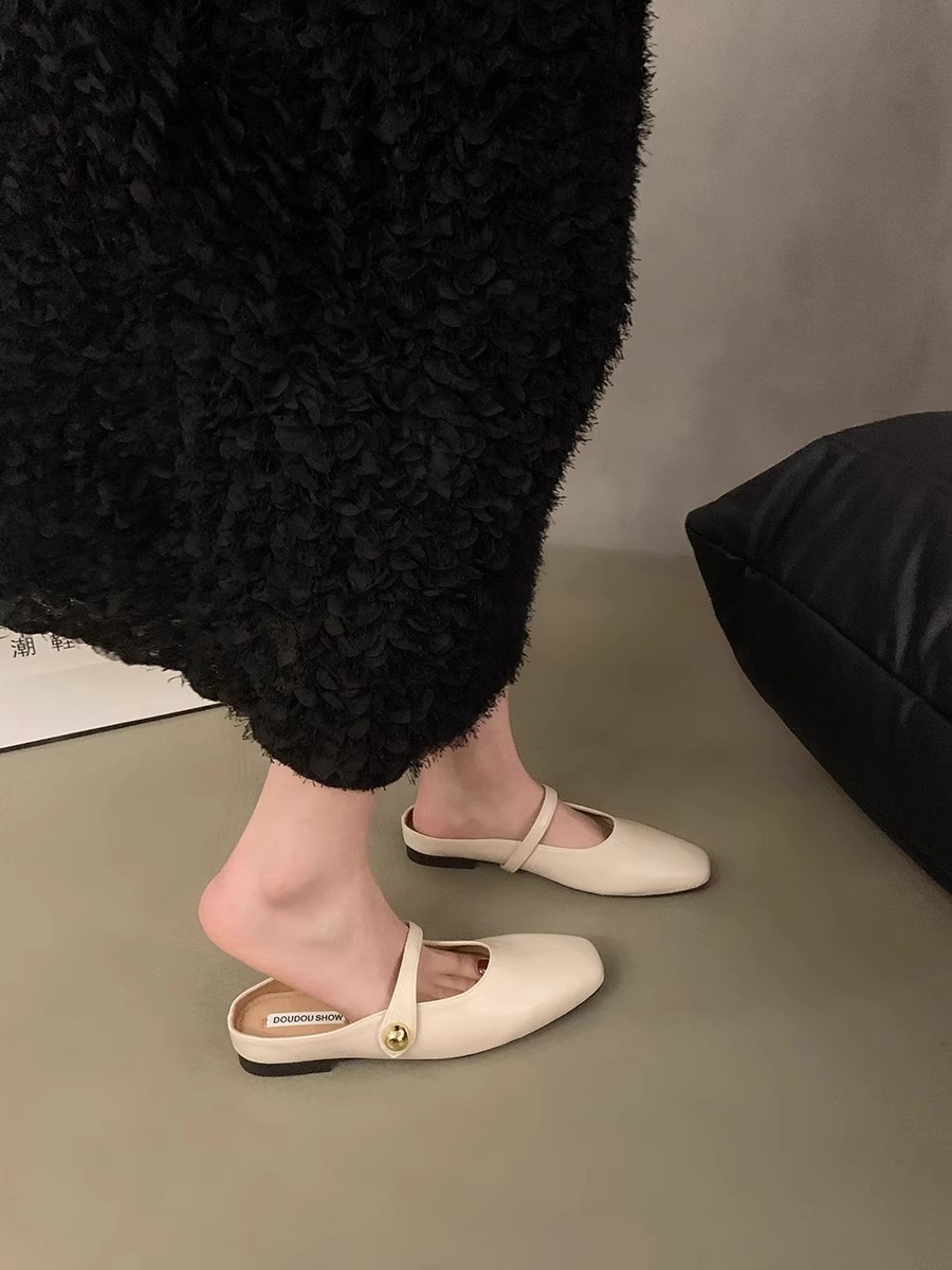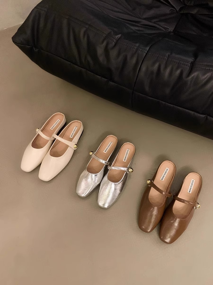 银色包头半拖鞋女夏季外穿2025新款一脚蹬懒人孕妇法式穆勒鞋半拖
