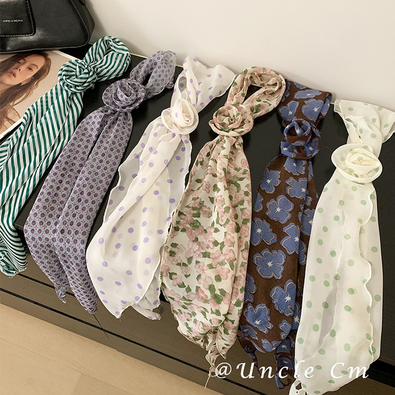 高级感花朵丝巾女2025年新款百搭印花系脖配饰薄款绑发长条颈带潮
