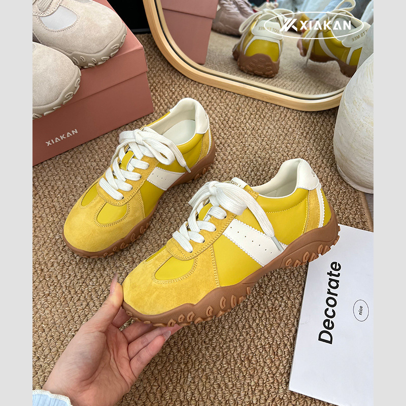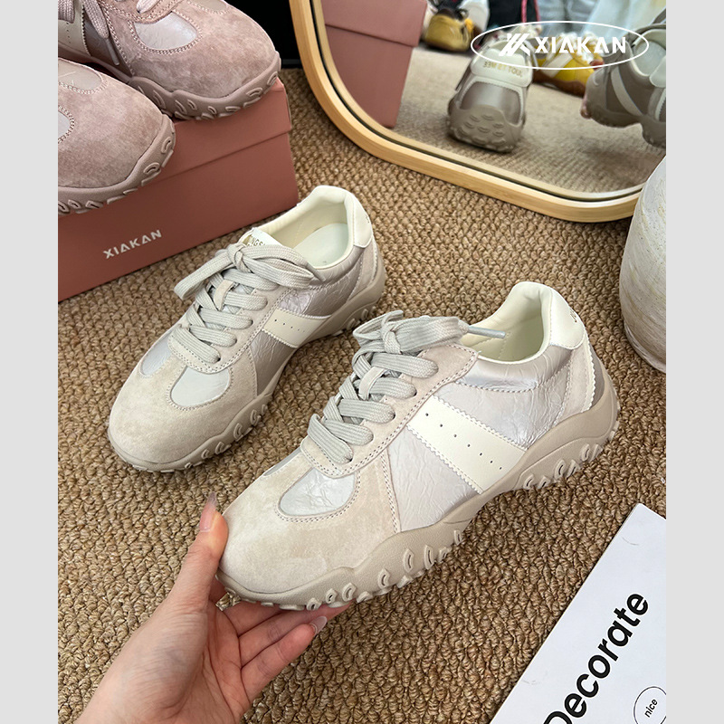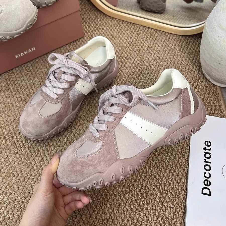 韩版复古真皮德训鞋女2025春季新款阿甘鞋舒适软底百搭运动休闲鞋
