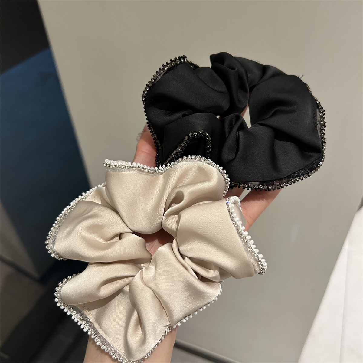 高级感轻奢大肠发圈法式优雅镶边缎面镶钻米珠女头绳气质发绳发饰