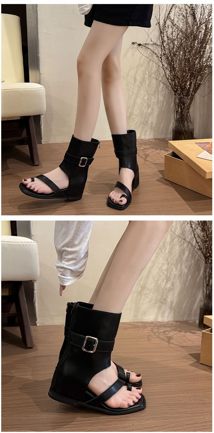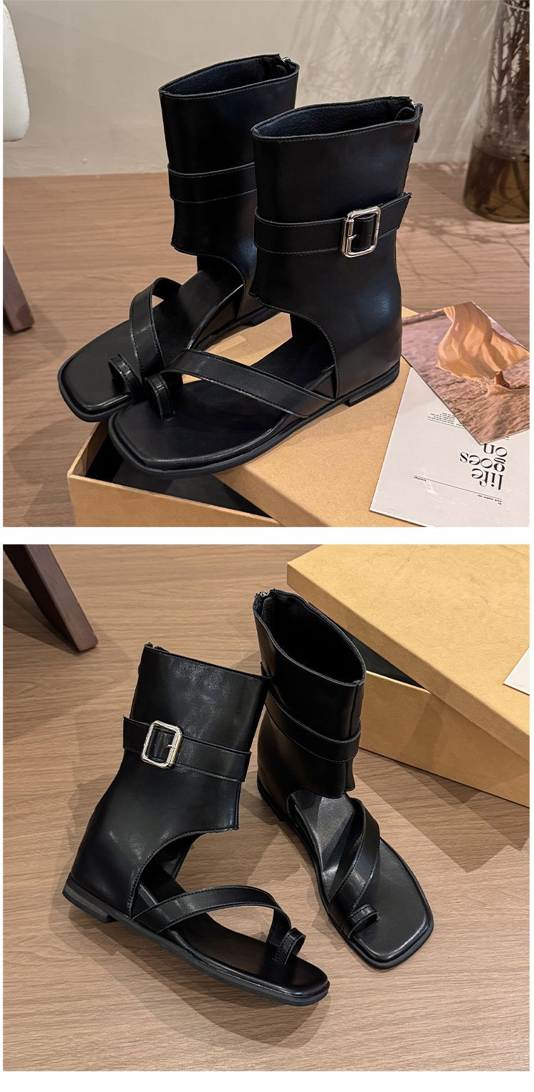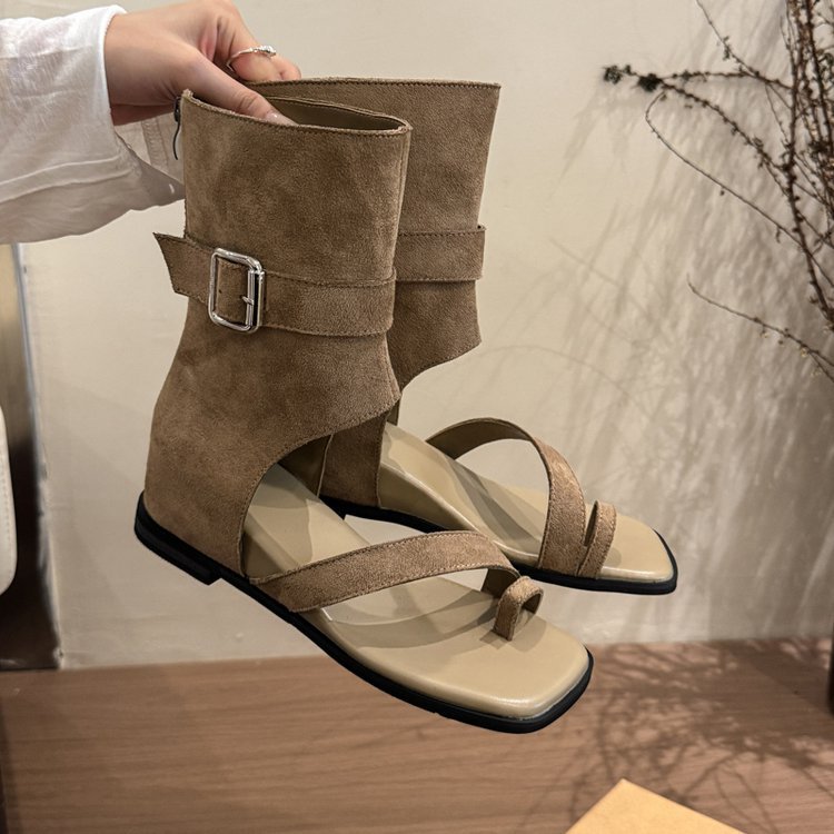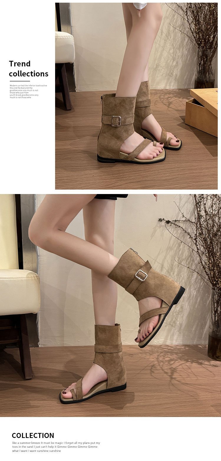 复古内增高平底套趾凉靴女2025年新款夏季小个子跛跟高帮罗马凉鞋