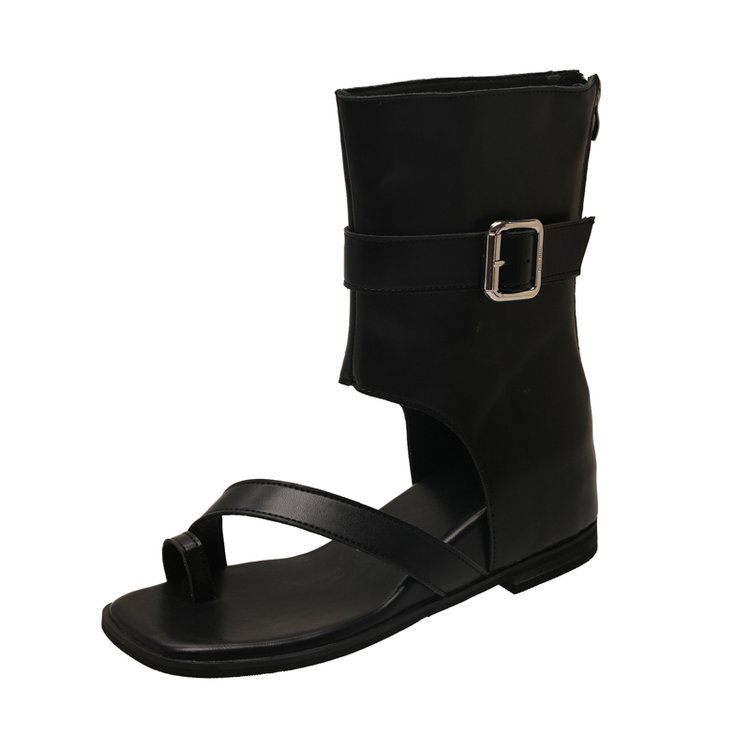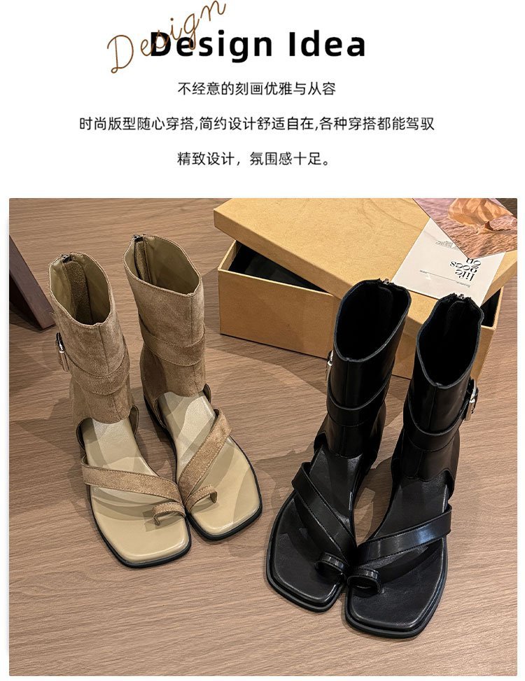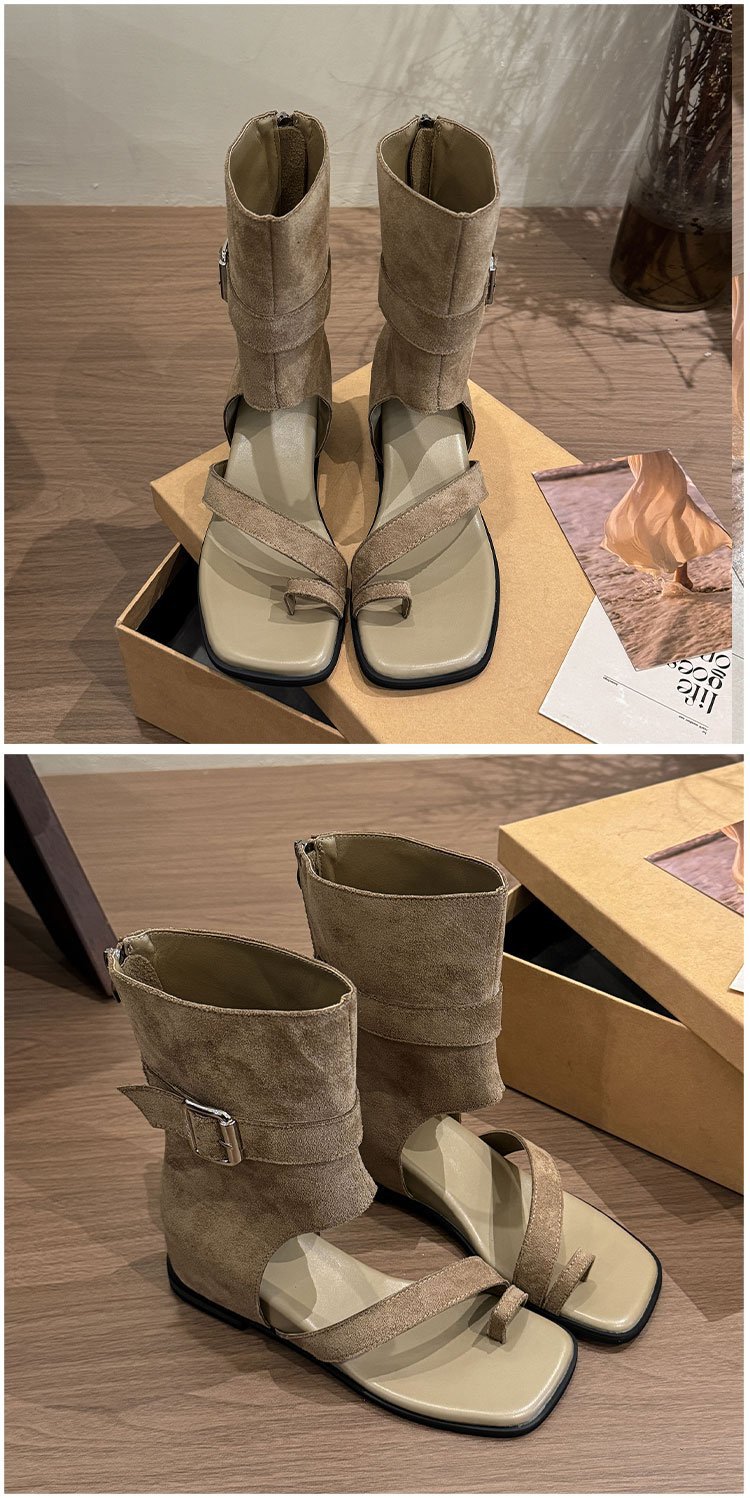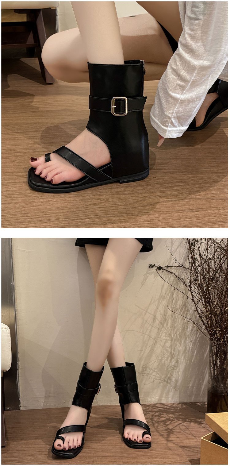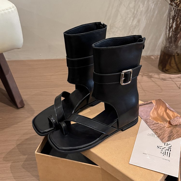 复古内增高平底套趾凉靴女2025年新款夏季小个子跛跟高帮罗马凉鞋