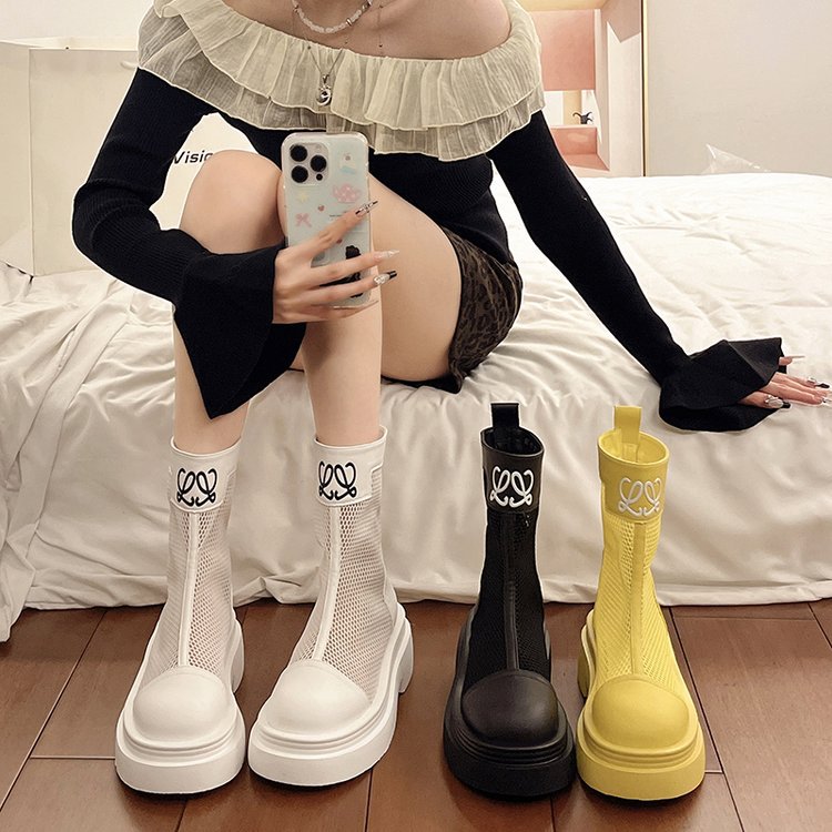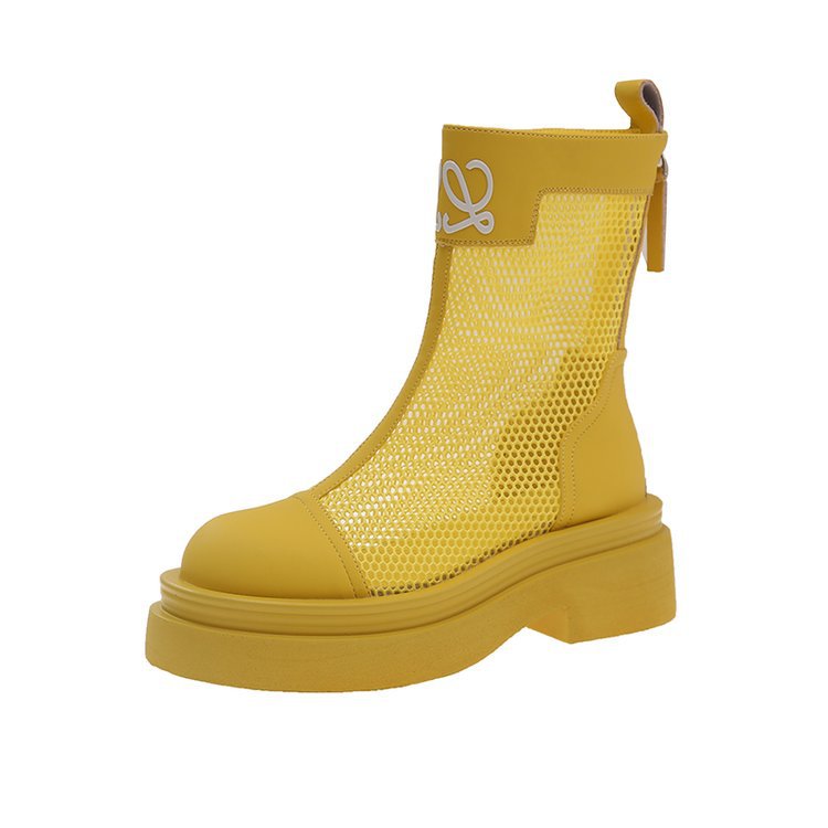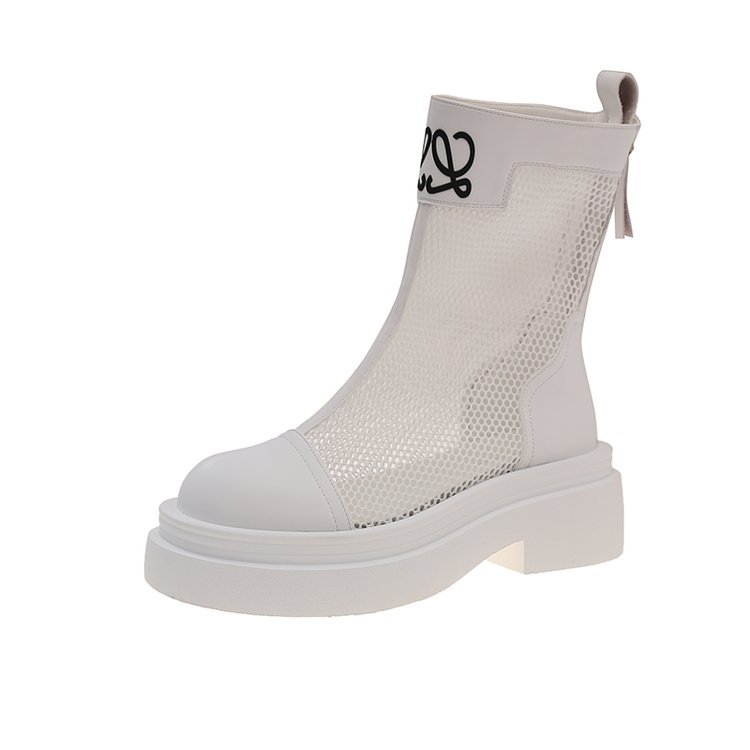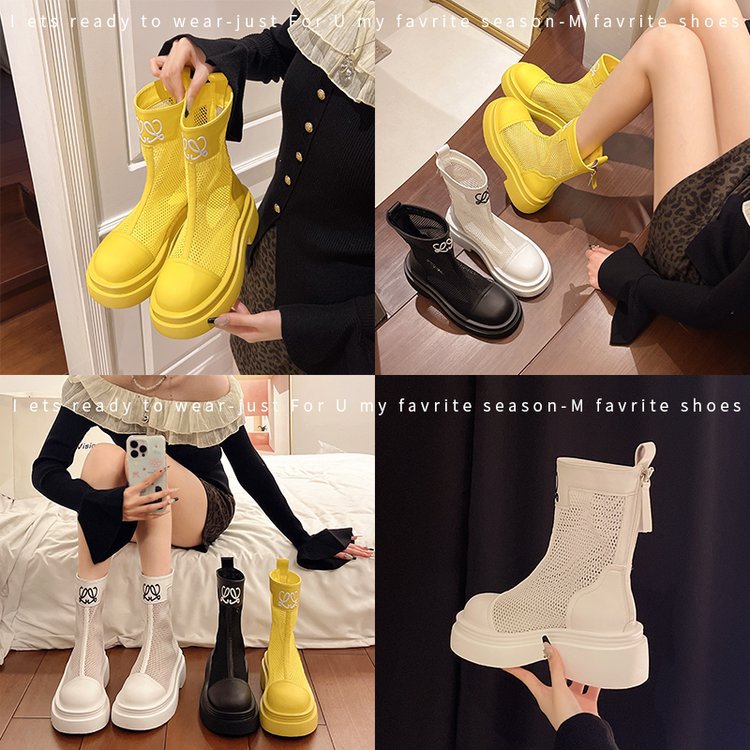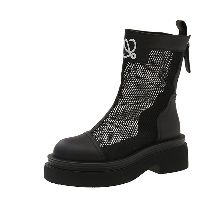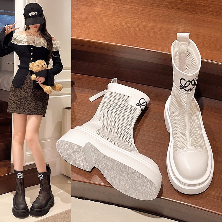 厚底镂空马丁靴女2025夏季新款薄款透气网面凉靴小个子百搭增高短