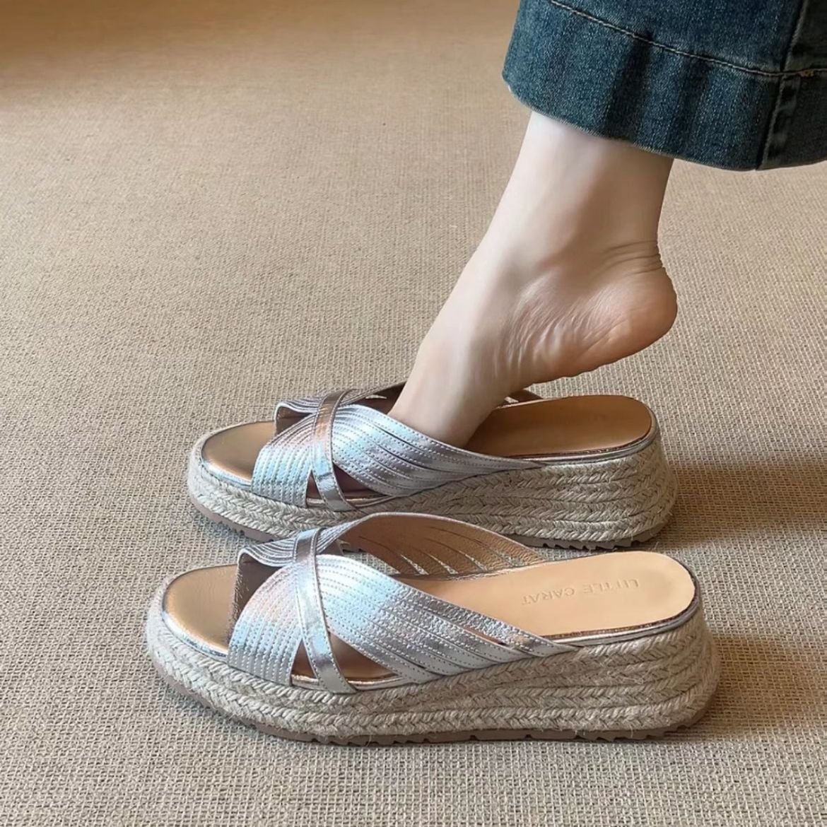 法式跛跟拖鞋女夏外穿205新款厚底一字拖复古时尚露趾设计感凉拖