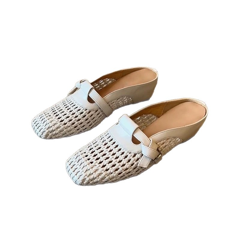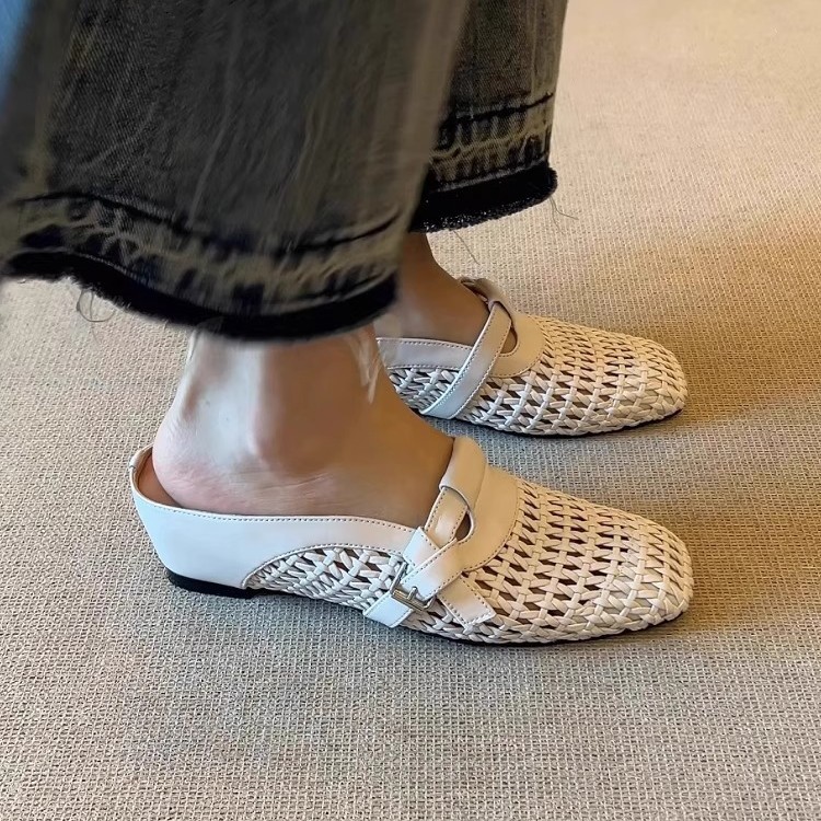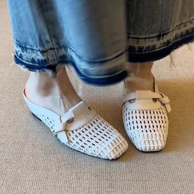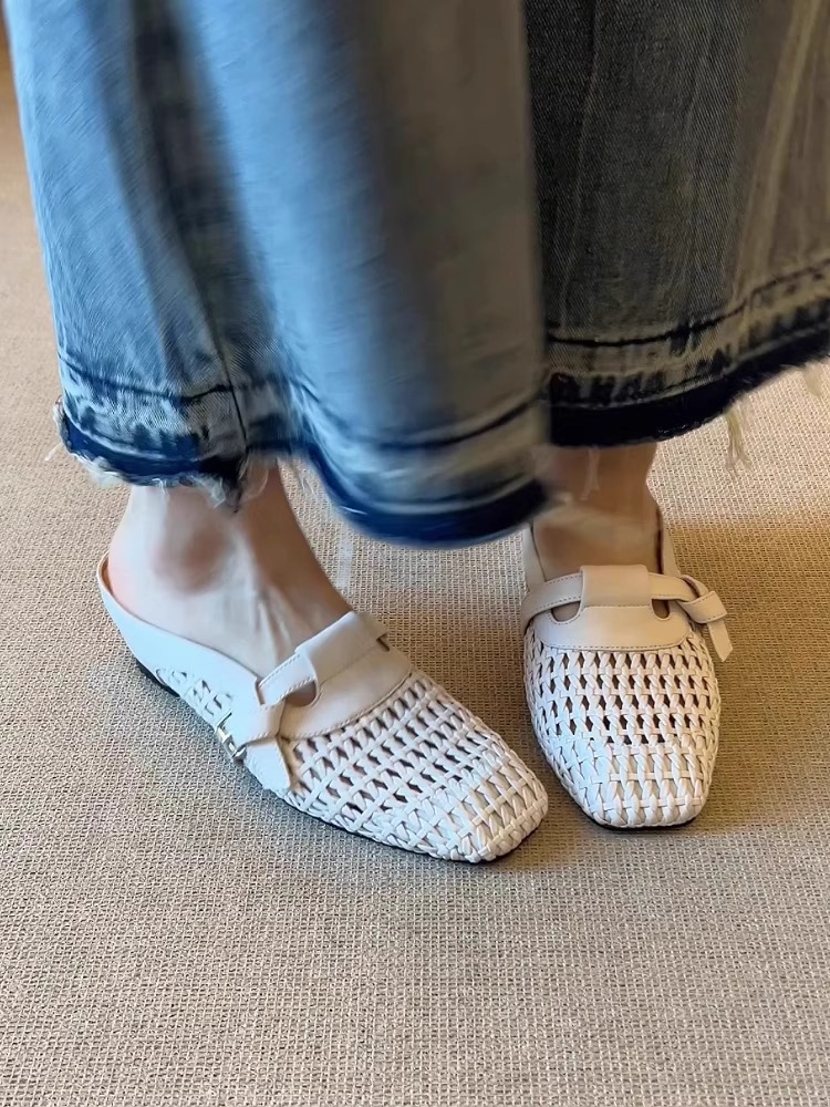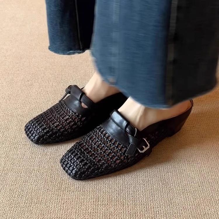 2025新款6cm内增高法式编织镂空包头凉鞋百搭舒适一字带外穿凉拖