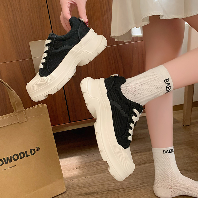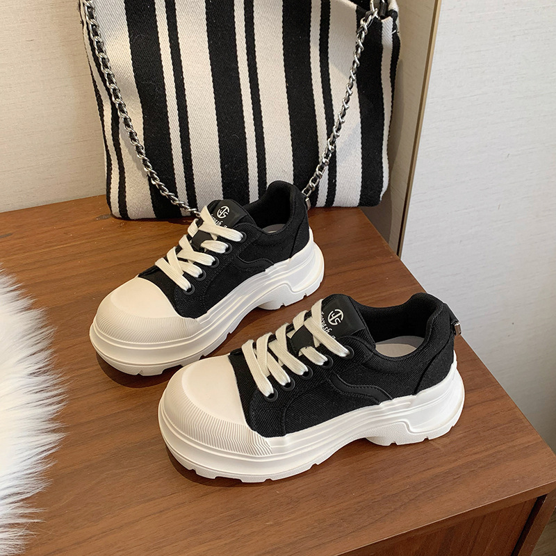 韩版小白鞋女2025年春秋新款松糕厚底增高板鞋设计感休闲运动鞋女