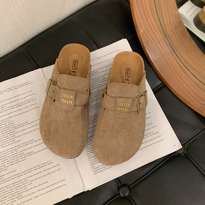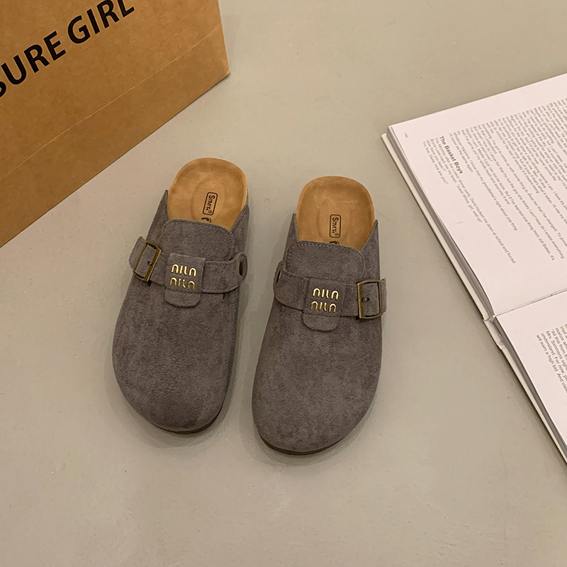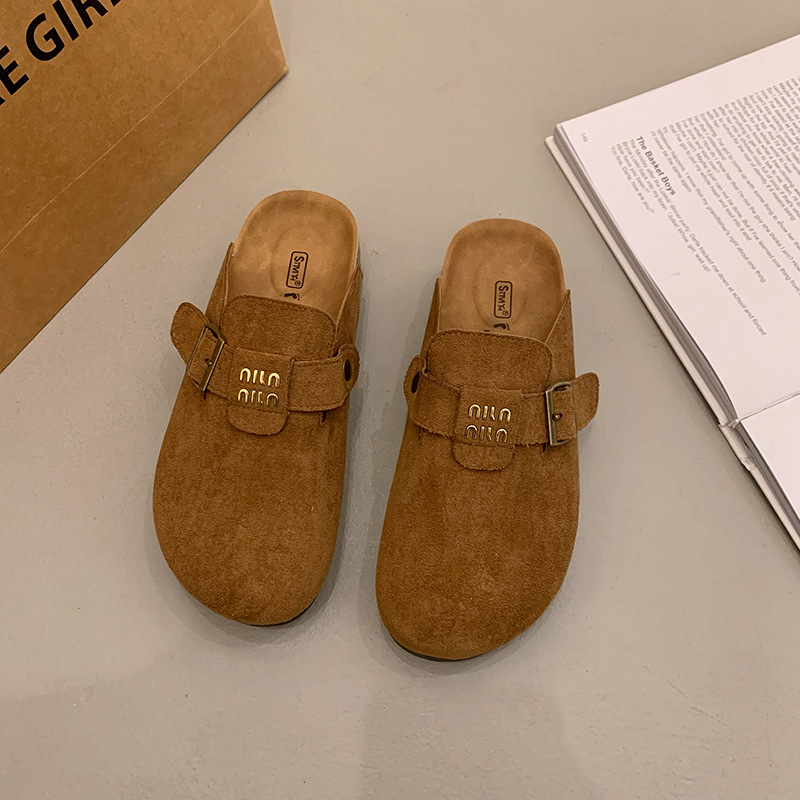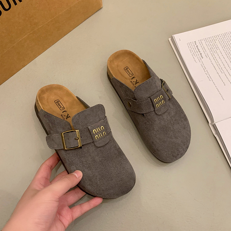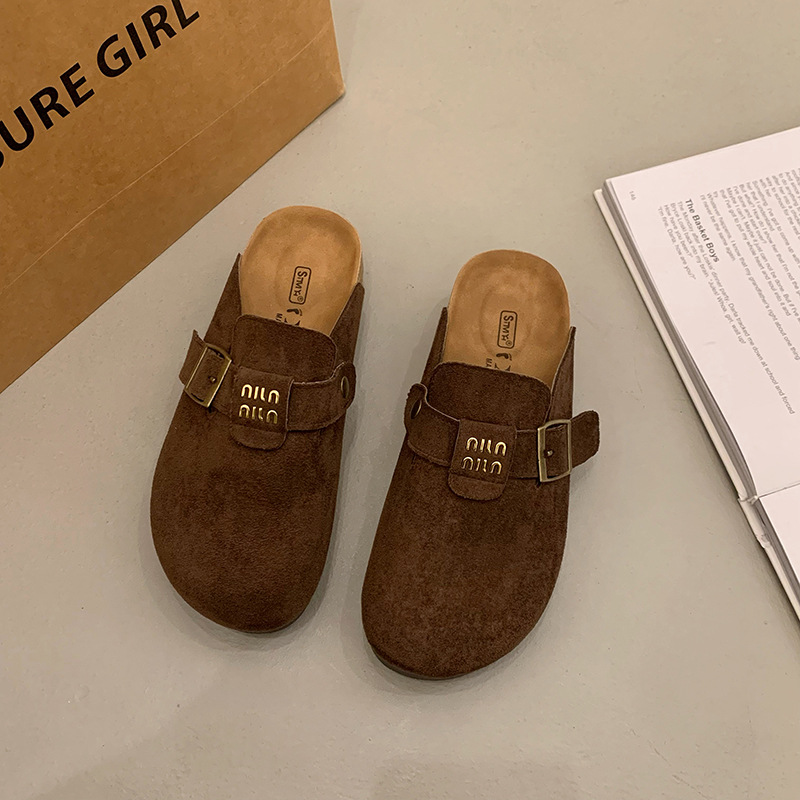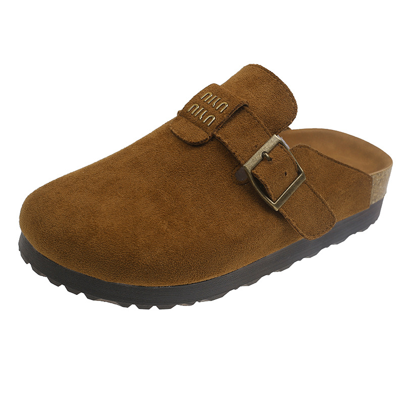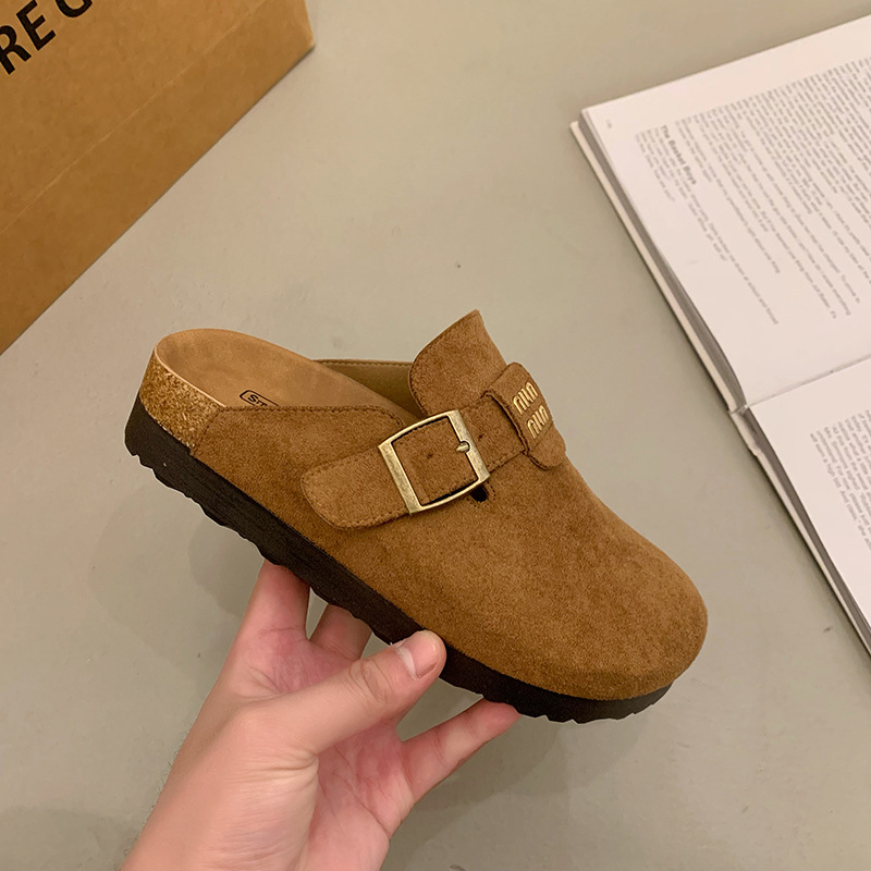 厚底博肯鞋女2025春季新款一脚蹬懒人包头半拖鞋外穿软木凉拖鞋