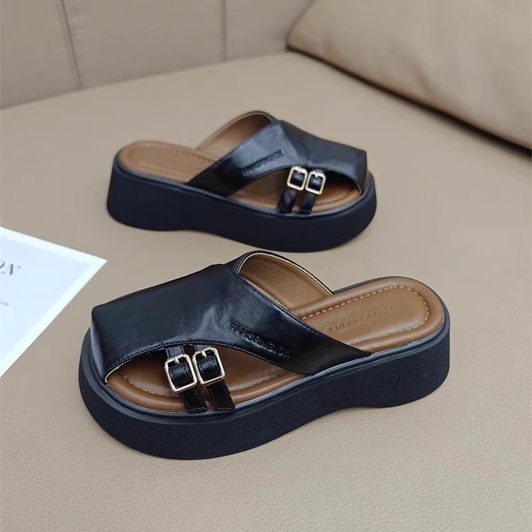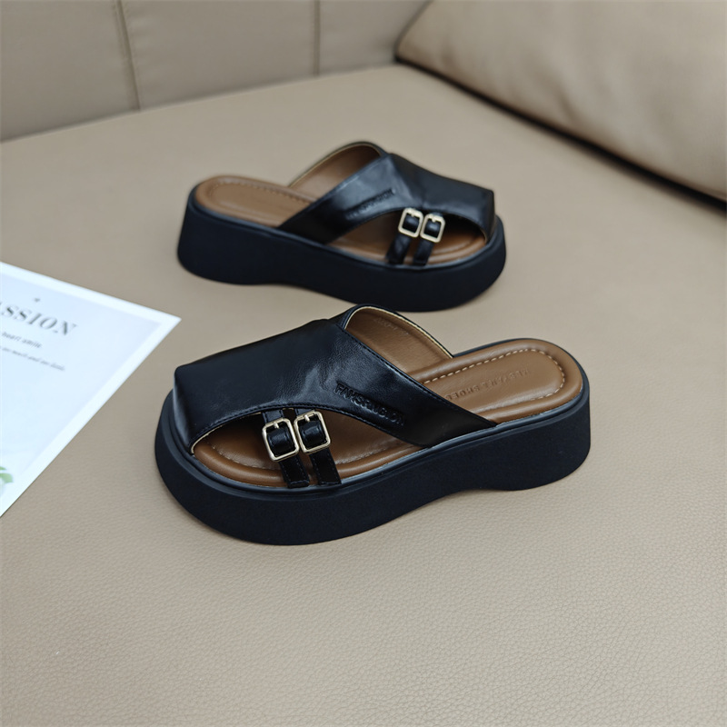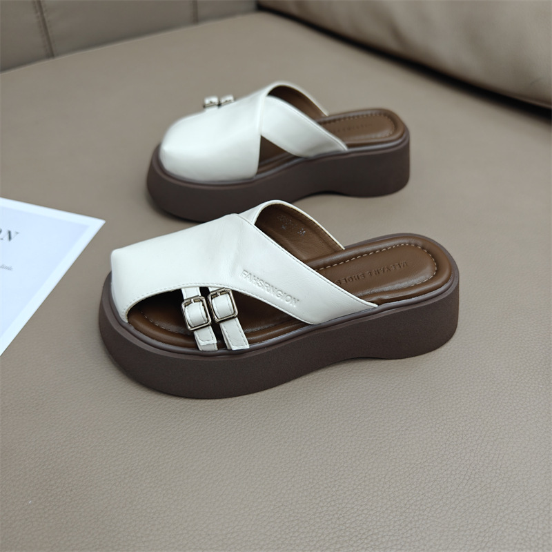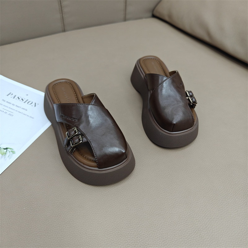 复古包头半拖鞋女夏外穿2025新款增高厚底凉拖鞋百搭沙滩罗马鞋