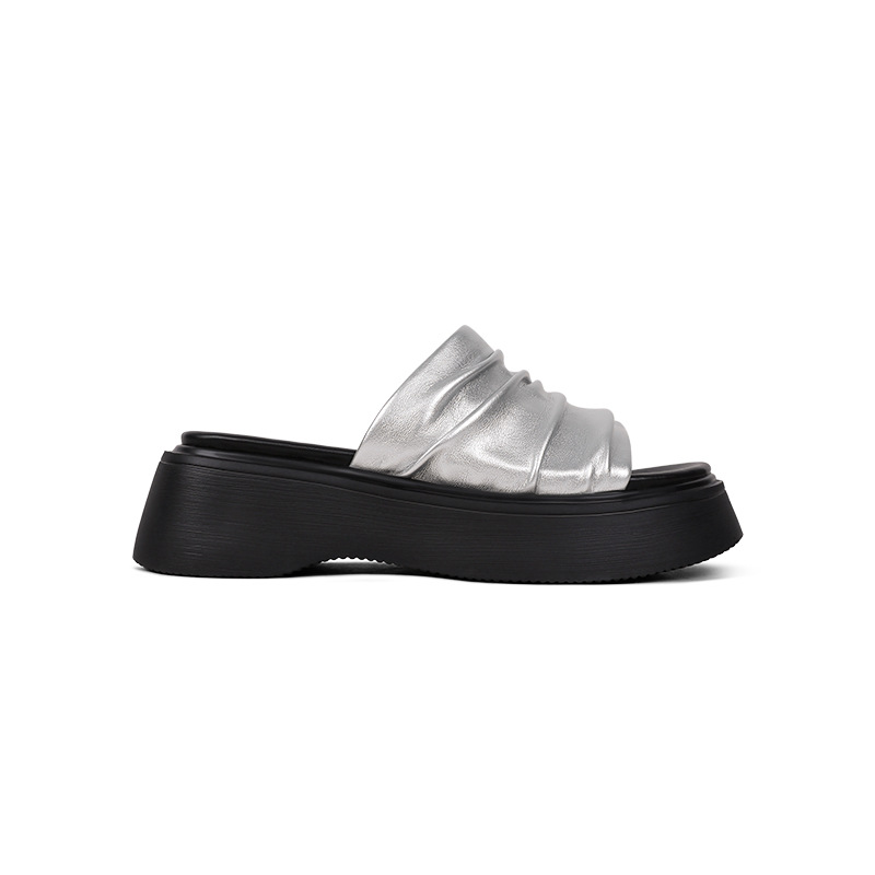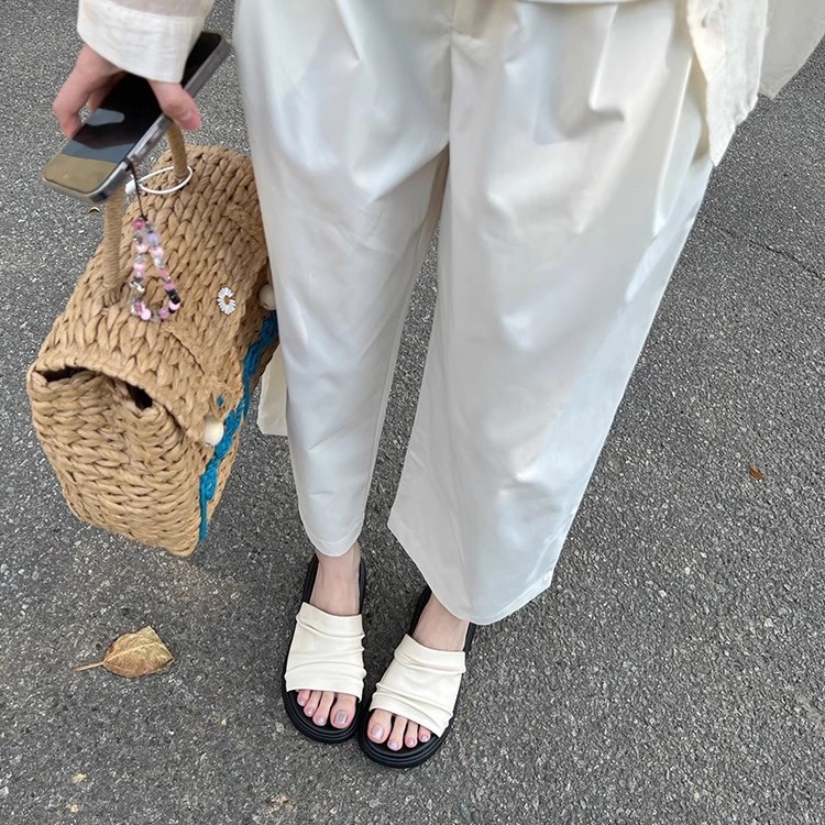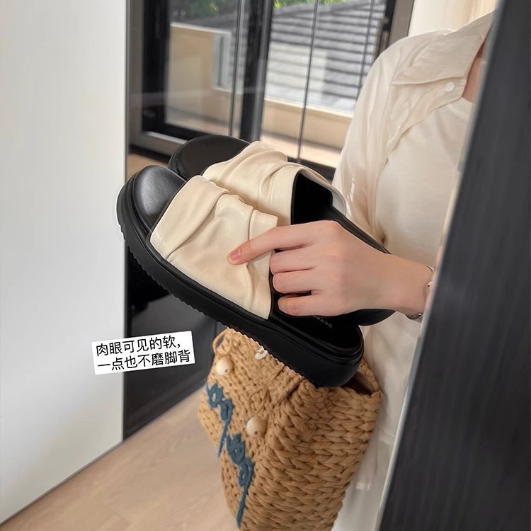 皱褶度假沙滩鞋休闲一字拖凉鞋2025年夏季新款厚底凉拖鞋女外穿