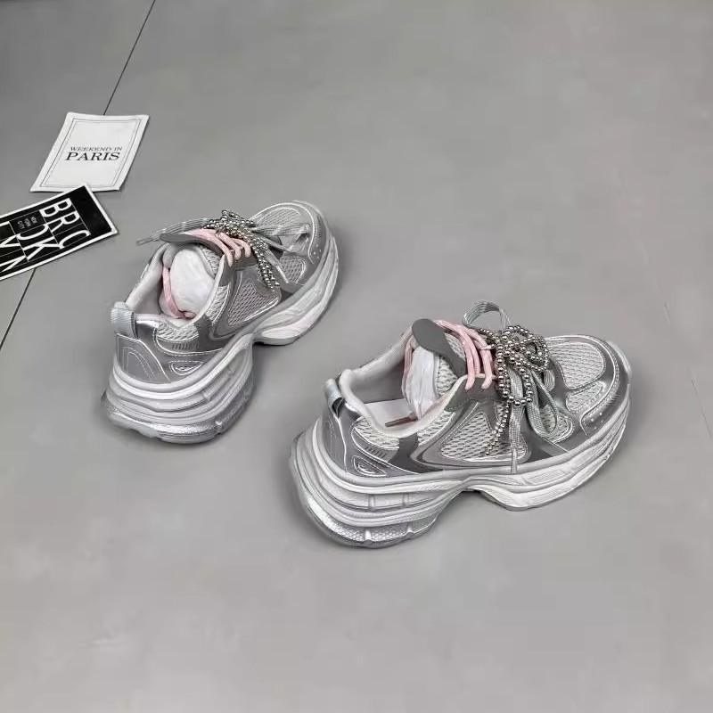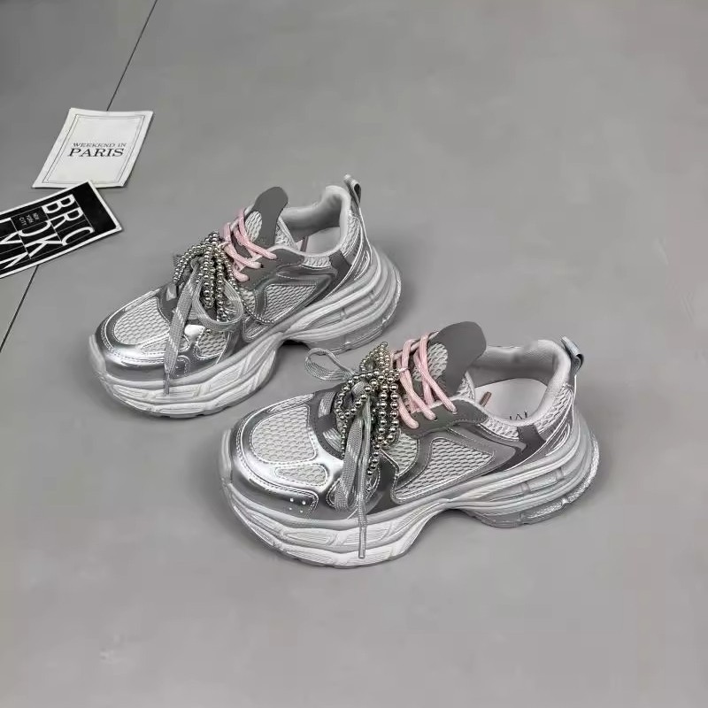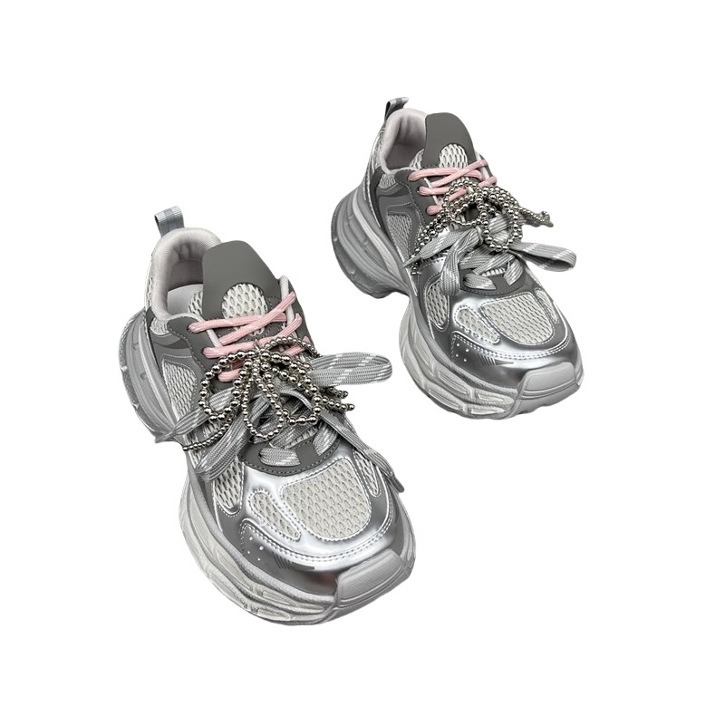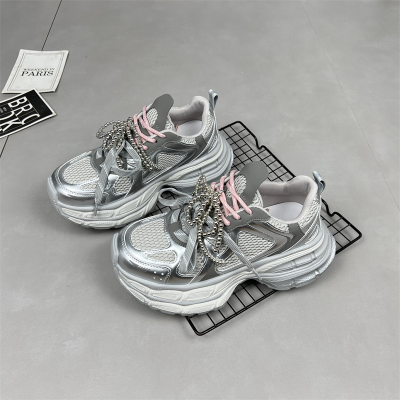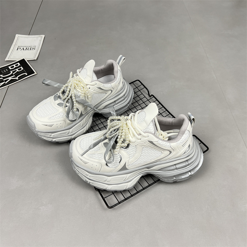真皮双鞋带老爹鞋女2025春季新款厚底增高网面透气轻便休闲运动鞋