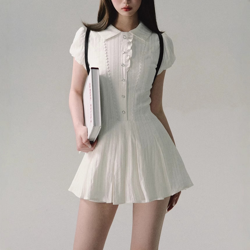 '等你下课'连衣裙a字裙短袖衬衫裙通勤学院风辣妹茶歇裙