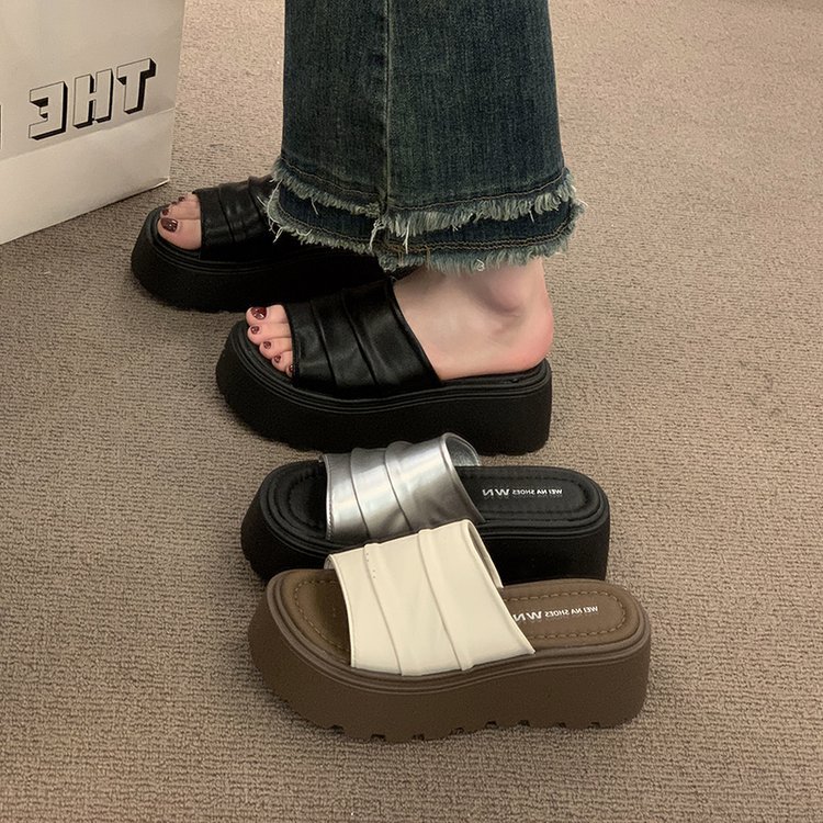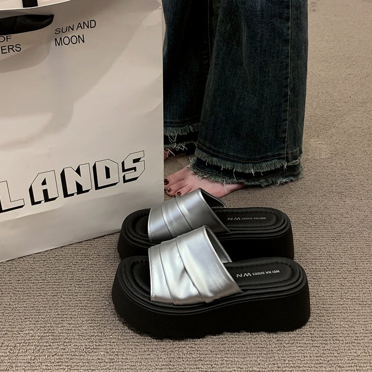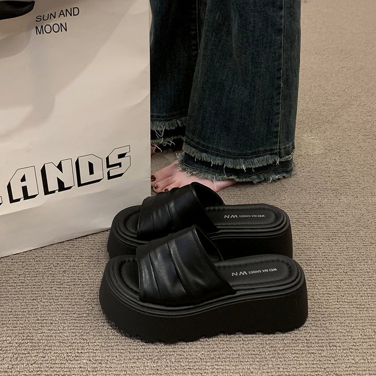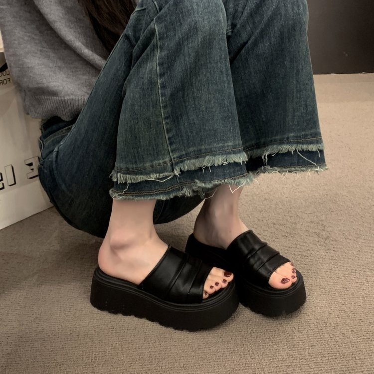 厚底凉拖鞋女夏外穿2025新款时尚小众设计感沙滩一字拖高级感凉鞋