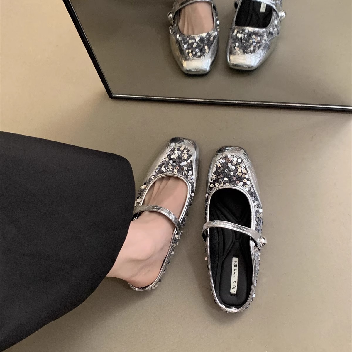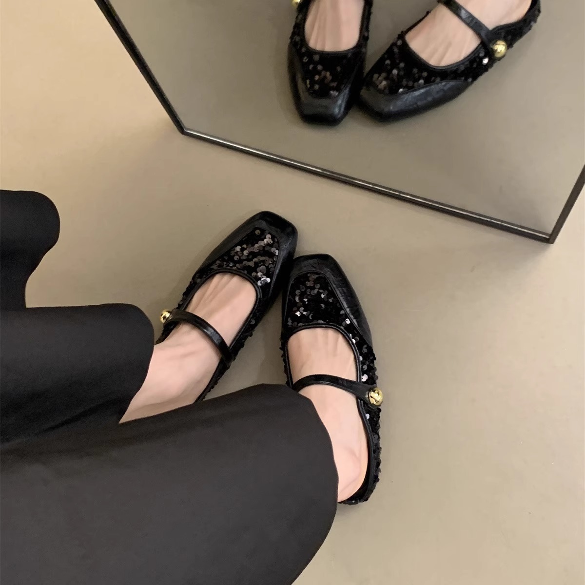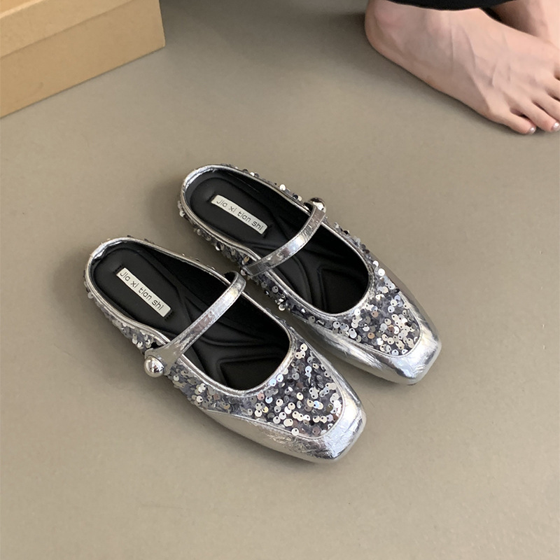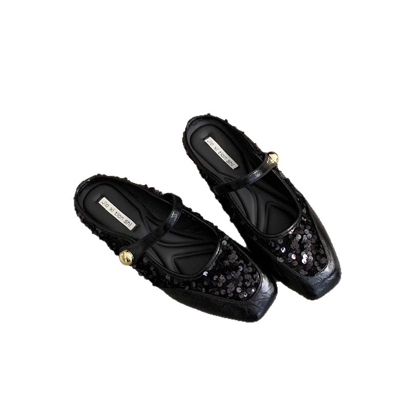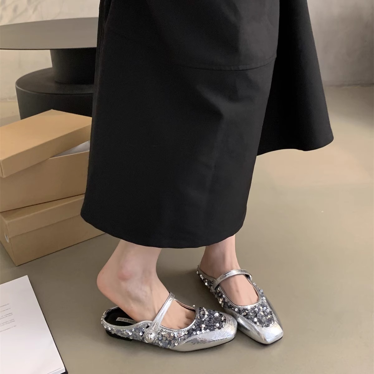 玛丽珍包头半拖鞋女2025夏季新款小个子增高亮片懒人鞋浅口单鞋