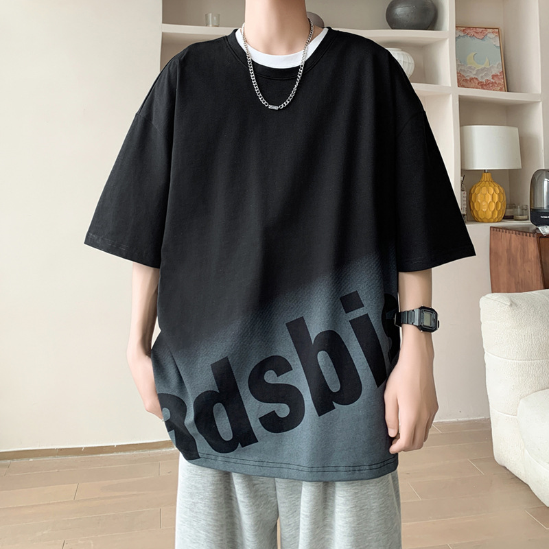 港风新款夏季男潮流宽松服潮牌学生短袖T恤上衣圆领五分袖半袖T恤