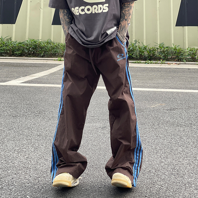美式复古伞兵运动休闲裤男夏季新款速干三条杠阔腿街舞长裤子