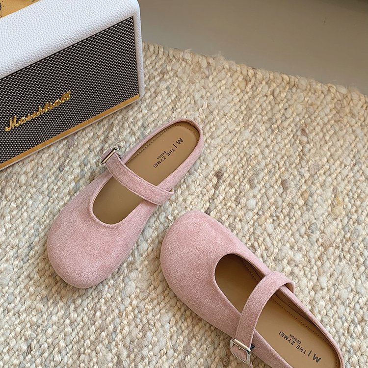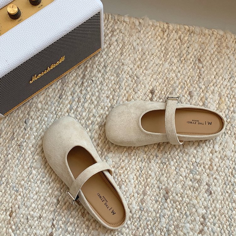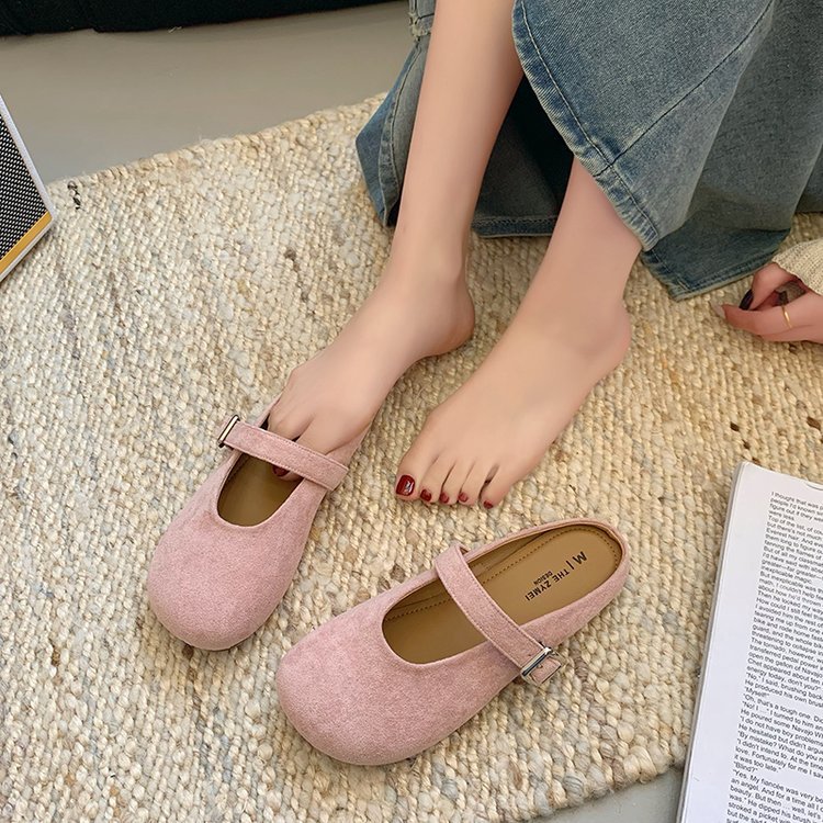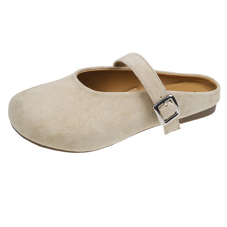 真皮厚底复古包头半拖鞋女2025春秋新款一脚蹬灰色赖人博肯鞋单鞋