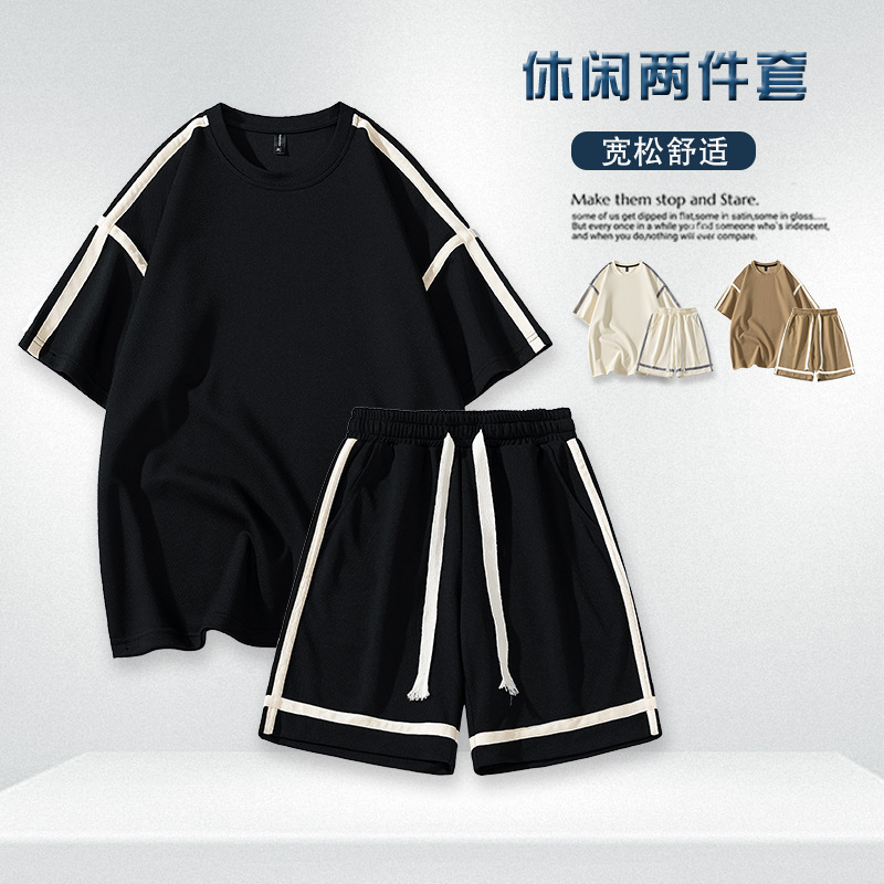 夏季新款休闲时尚帅气百搭圆领薄款宽松短袖T恤短裤运动简约套装