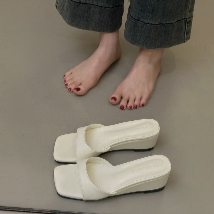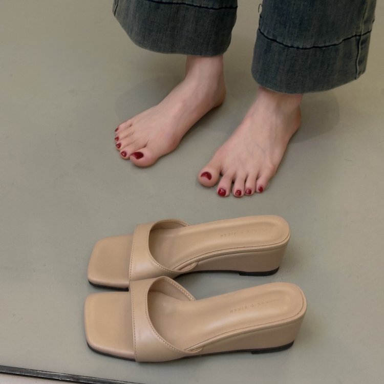 一字带跛跟露趾凉拖鞋女外穿2025夏季新款百搭温柔气质方头一字拖