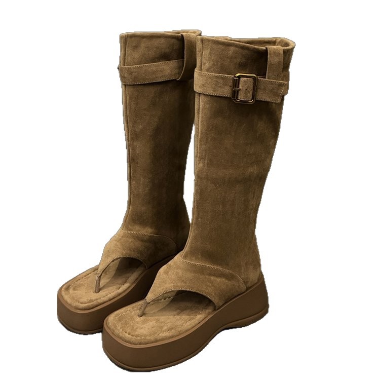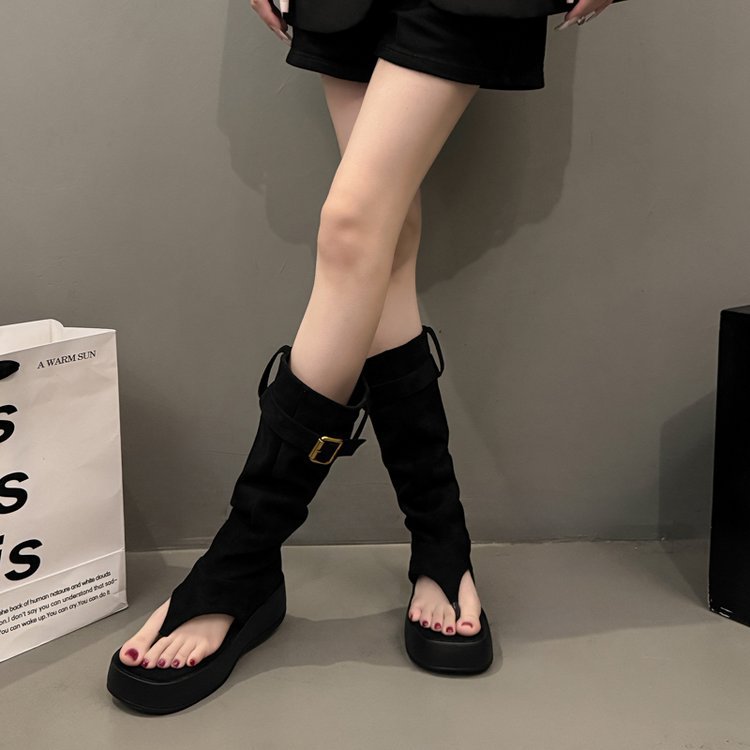 厚底增高堆堆靴女短靴205夏季新款夹趾圆头罗马凉鞋美拉德长筒靴