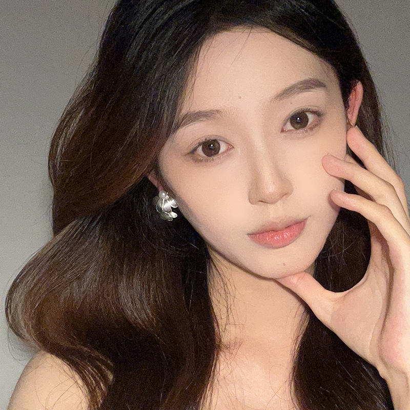 新中式国风拉丝花瓣珍珠耳环气质小众独特金属耳钉新款耳饰