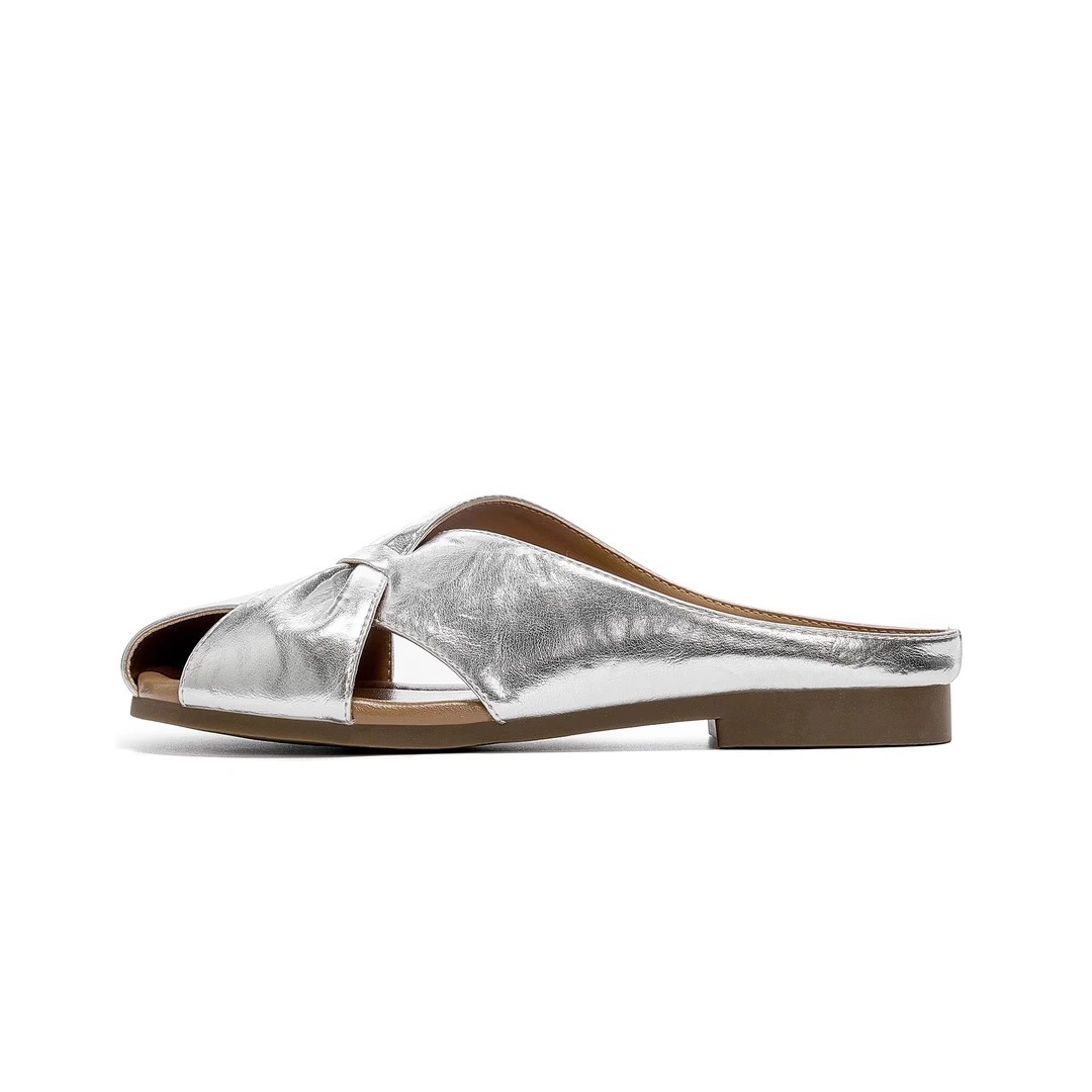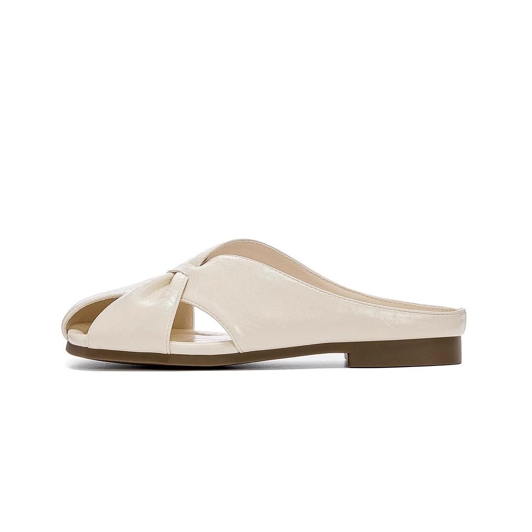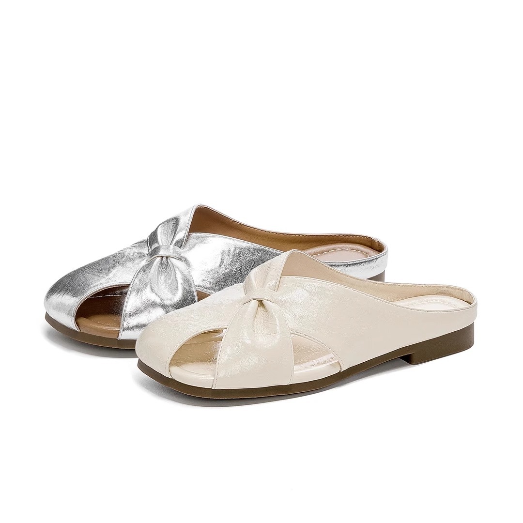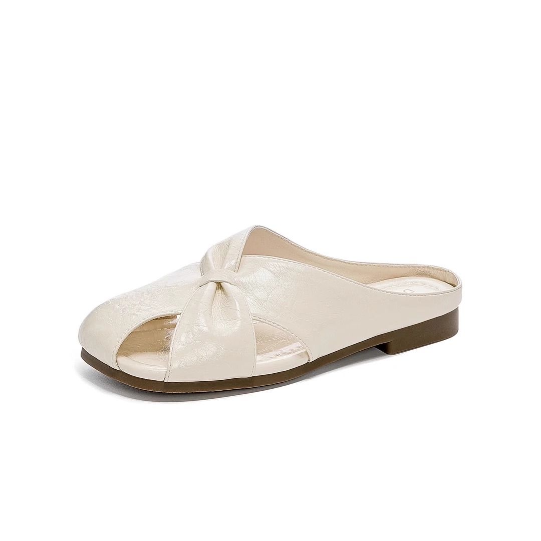 包头半拖鞋女时尚2025新款夏季真皮平底软底气质一脚蹬凉拖鞋女鞋