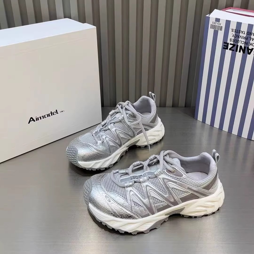 欧货复古网面透气户外运动鞋女2025夏新款厚底登山防滑休闲老爹鞋