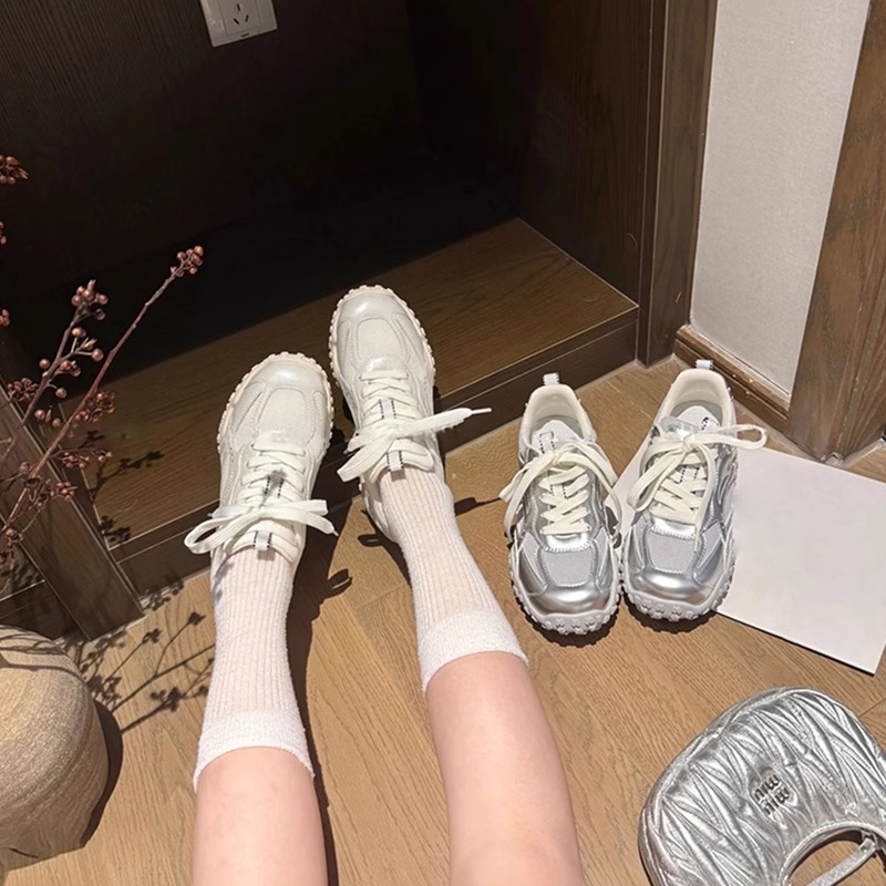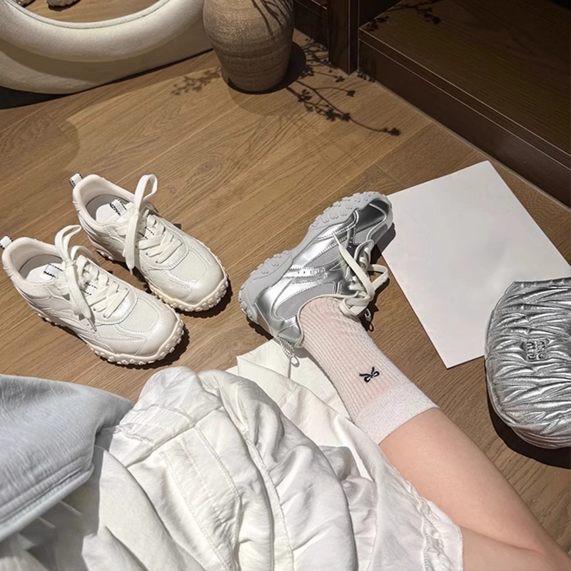 6cm内增高休闲鞋女2025夏新款厚底网面透气德训鞋百搭休闲运动鞋