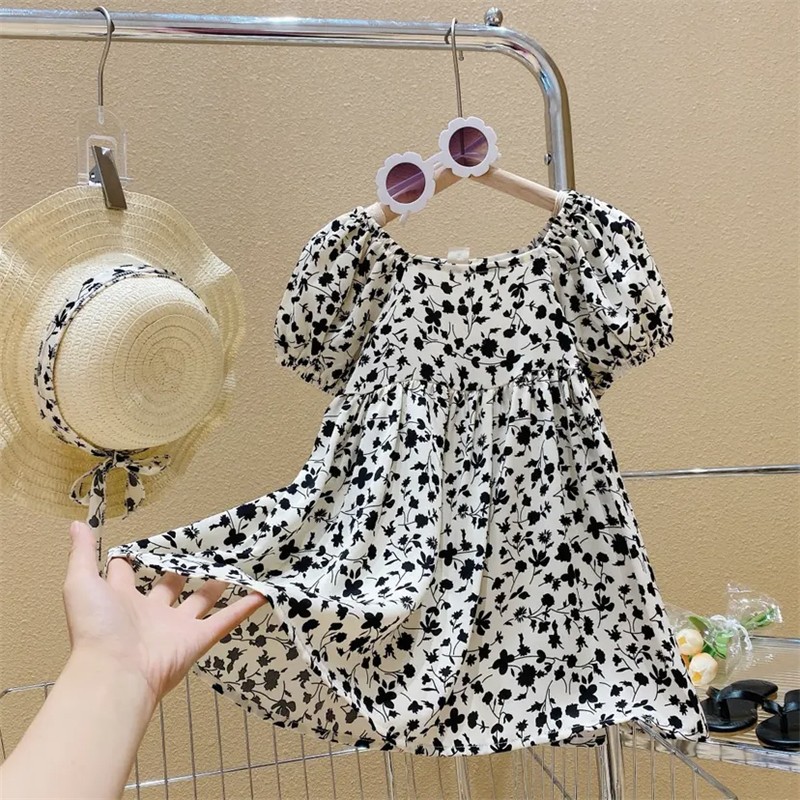 送帽子2025年新品夏款女童韩版洋气小女孩方领碎花连衣裙子